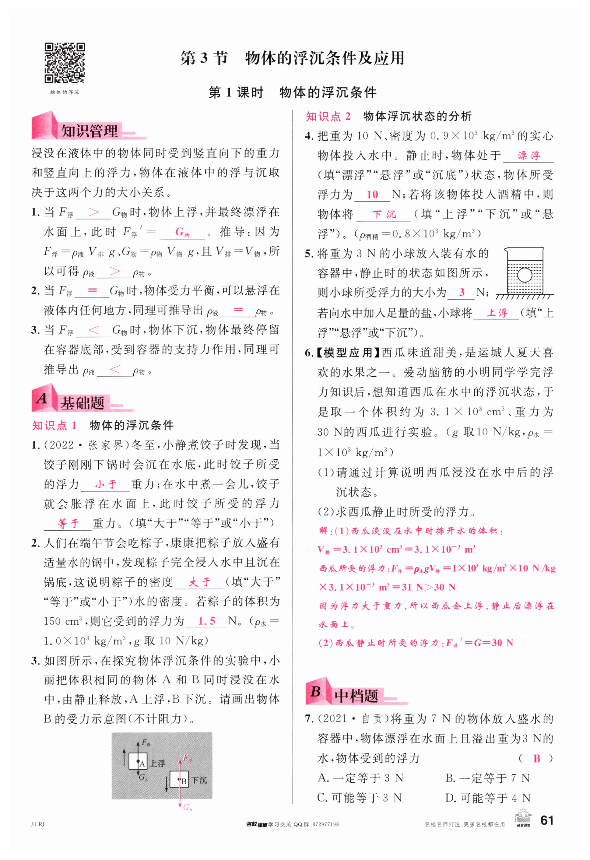 注:目前有些书本章节名称可能整理的还不是很完善,但都是按照顺序排列的,请同学们按照顺序仔细查找。练习册 2024年名校课堂八年级物理下册人教版四川专版 答案主要是用来给同学们做完题方便对答案用的,请勿直接抄袭。