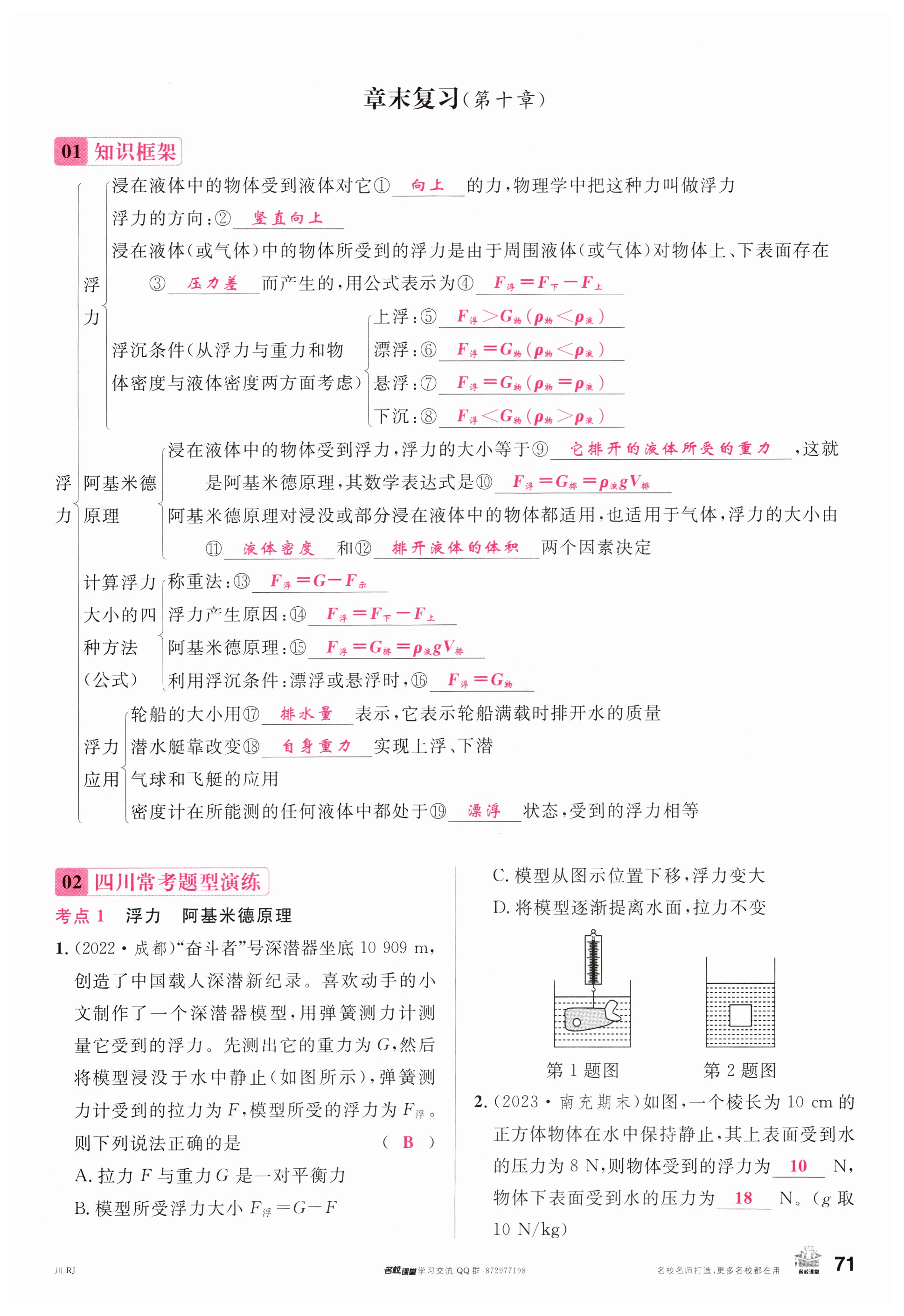 注:目前有些书本章节名称可能整理的还不是很完善,但都是按照顺序排列的,请同学们按照顺序仔细查找。练习册 2024年名校课堂八年级物理下册人教版四川专版 答案主要是用来给同学们做完题方便对答案用的,请勿直接抄袭。