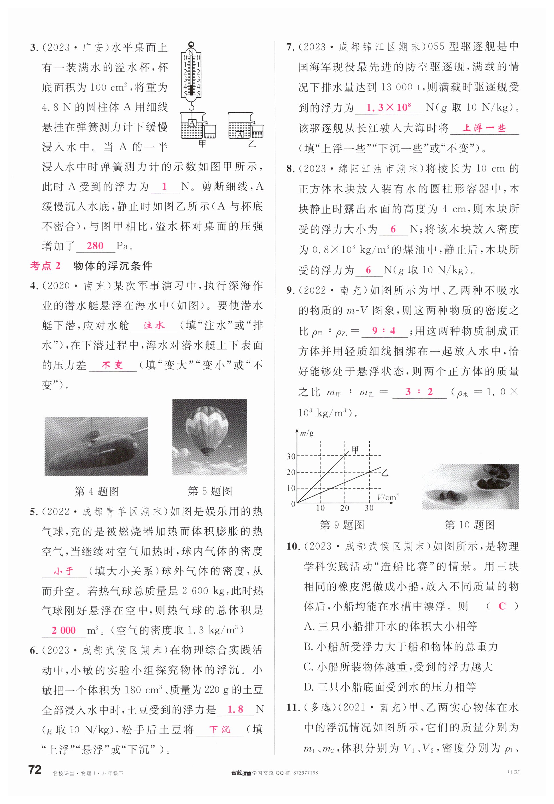 注:目前有些书本章节名称可能整理的还不是很完善,但都是按照顺序排列的,请同学们按照顺序仔细查找。练习册 2024年名校课堂八年级物理下册人教版四川专版 答案主要是用来给同学们做完题方便对答案用的,请勿直接抄袭。