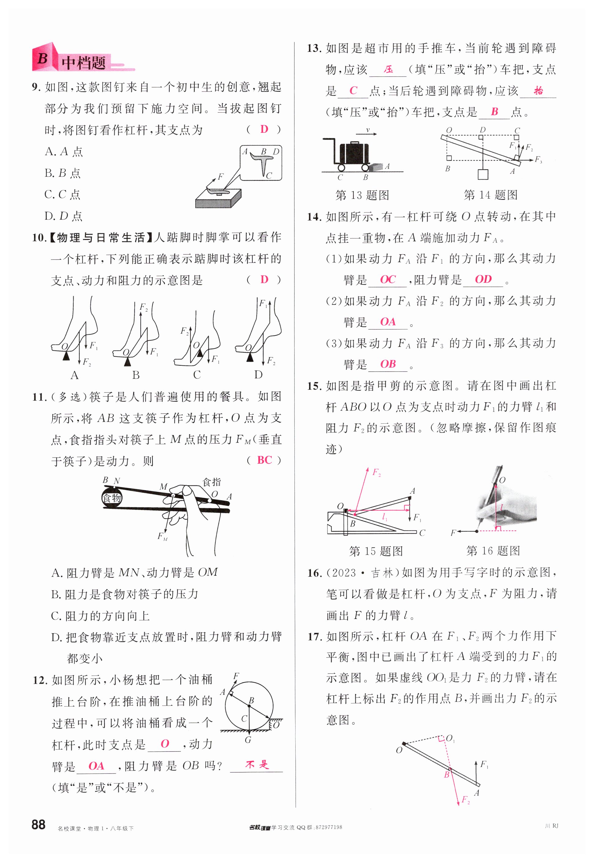 注:目前有些书本章节名称可能整理的还不是很完善,但都是按照顺序排列的,请同学们按照顺序仔细查找。练习册 2024年名校课堂八年级物理下册人教版四川专版 答案主要是用来给同学们做完题方便对答案用的,请勿直接抄袭。