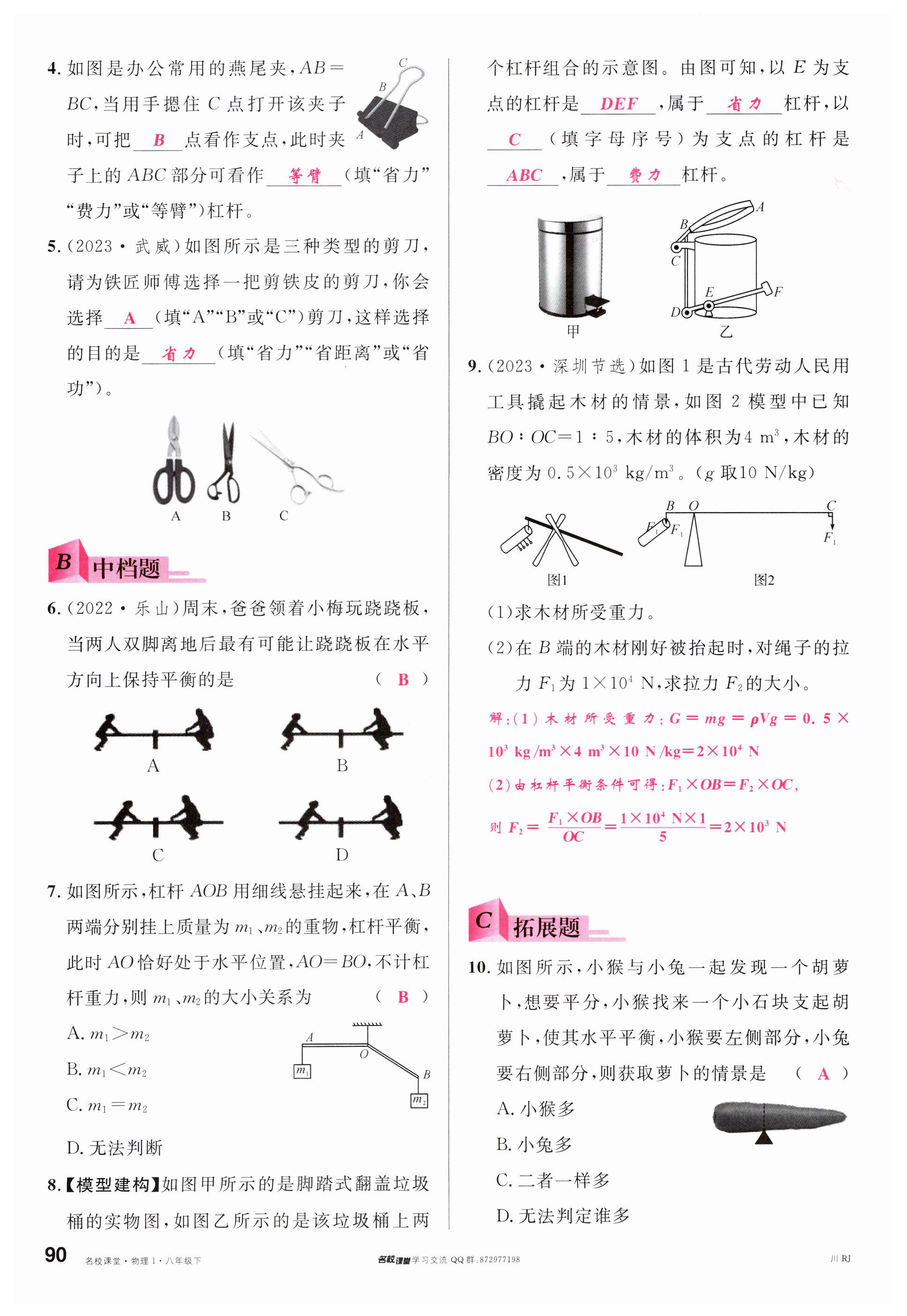 注:目前有些书本章节名称可能整理的还不是很完善,但都是按照顺序排列的,请同学们按照顺序仔细查找。练习册 2024年名校课堂八年级物理下册人教版四川专版 答案主要是用来给同学们做完题方便对答案用的,请勿直接抄袭。