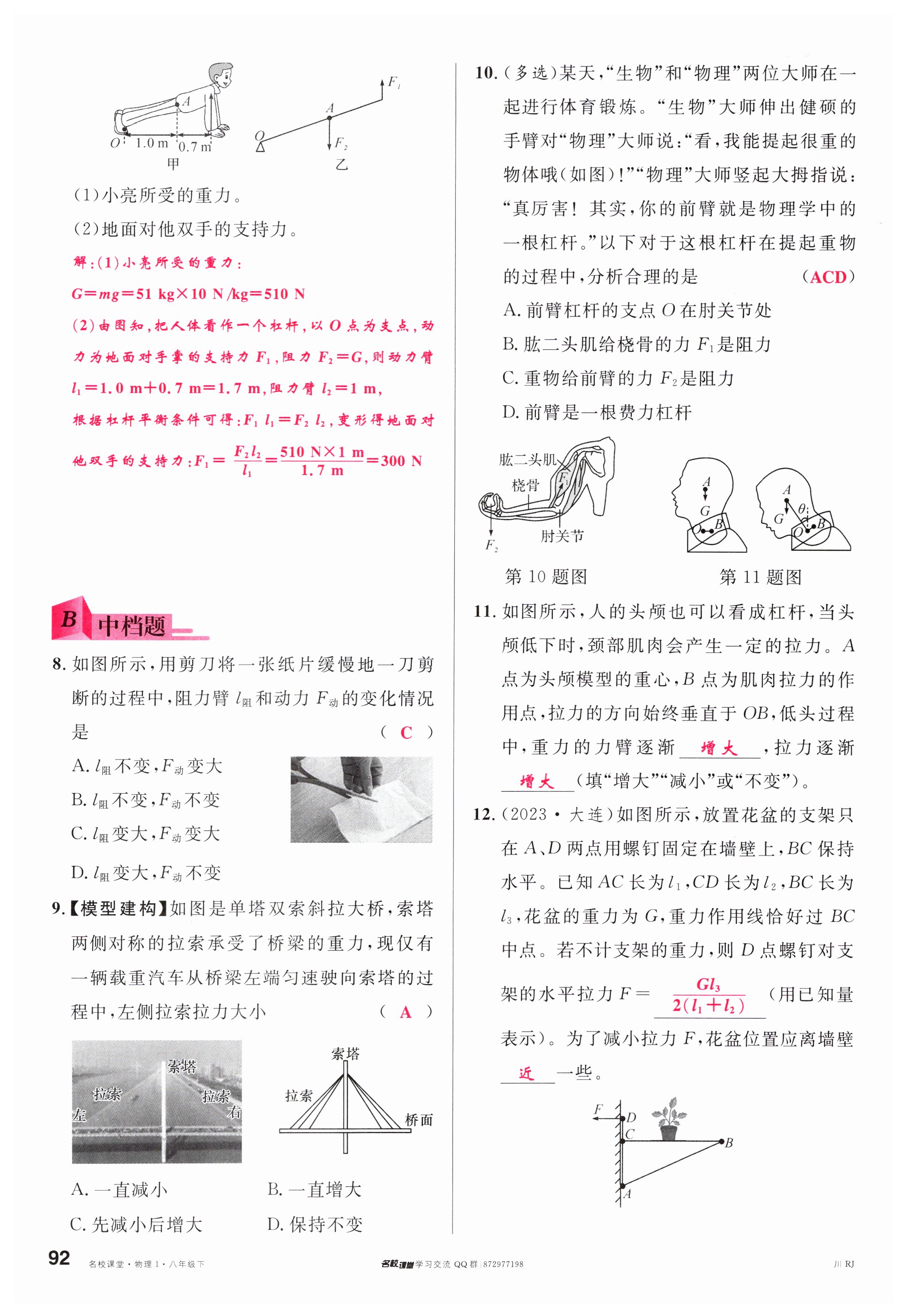 注:目前有些书本章节名称可能整理的还不是很完善,但都是按照顺序排列的,请同学们按照顺序仔细查找。练习册 2024年名校课堂八年级物理下册人教版四川专版 答案主要是用来给同学们做完题方便对答案用的,请勿直接抄袭。