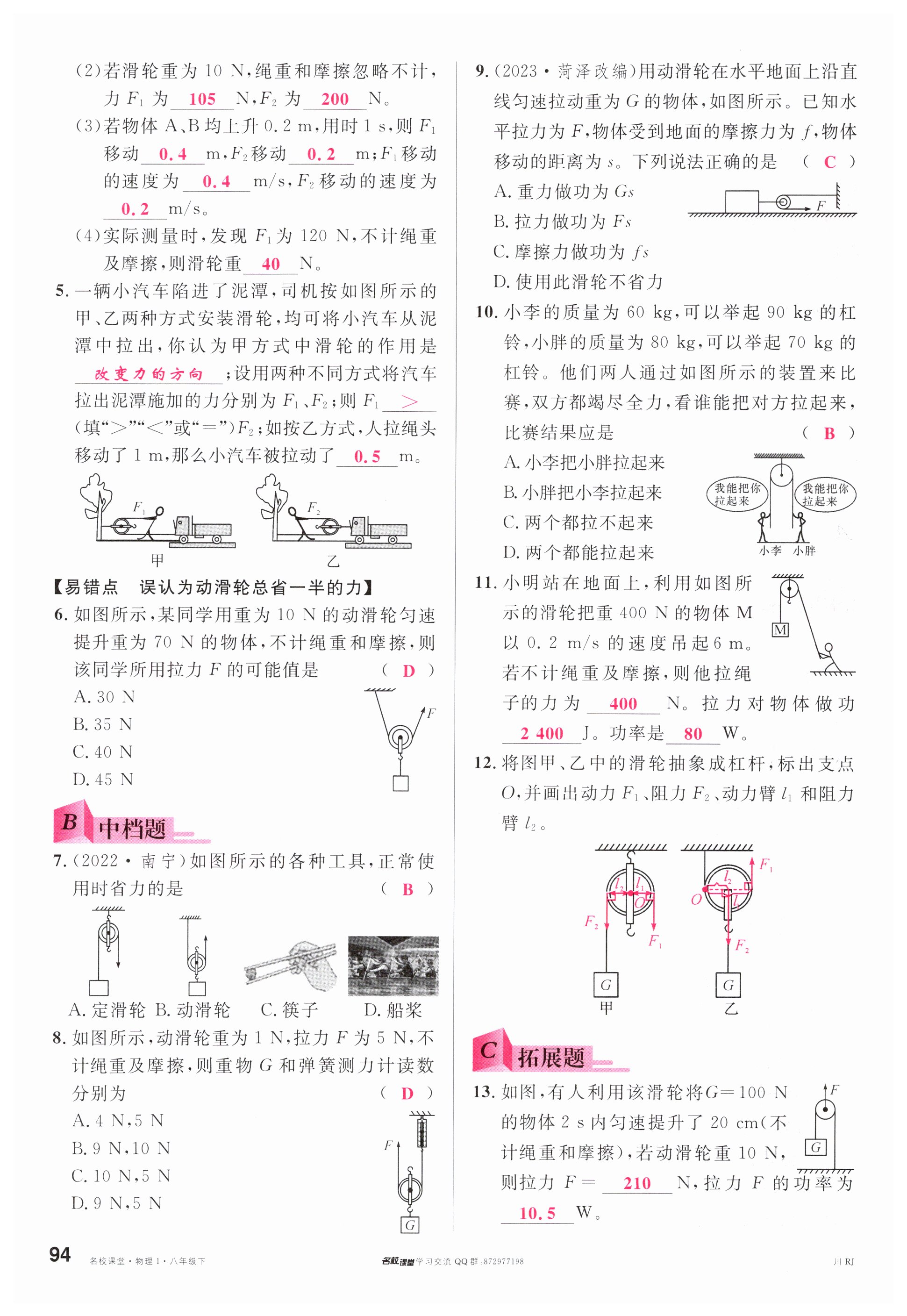 注:目前有些书本章节名称可能整理的还不是很完善,但都是按照顺序排列的,请同学们按照顺序仔细查找。练习册 2024年名校课堂八年级物理下册人教版四川专版 答案主要是用来给同学们做完题方便对答案用的,请勿直接抄袭。