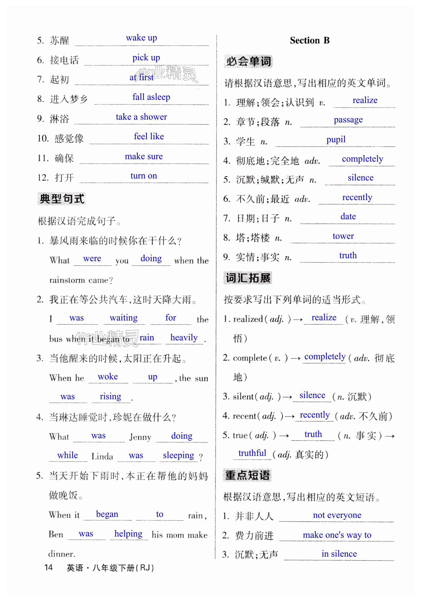 注:目前有些书本章节名称可能整理的还不是很完善,但都是按照顺序排列的,请同学们按照顺序仔细查找。练习册 2024年课堂点睛八年级英语下册人教版安徽专版 答案主要是用来给同学们做完题方便对答案用的,请勿直接抄袭。