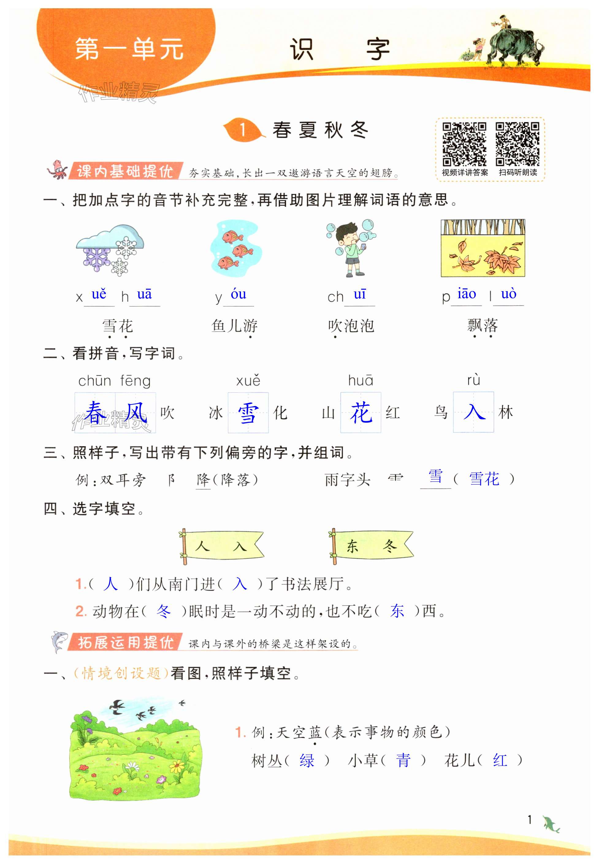 注:目前有些书本章节名称可能整理的还不是很完善,但都是按照顺序排列的,请同学们按照顺序仔细查找。练习册2024年实验班提优训练一年级语文下册人教版答案主要是用来给同学们做完题方便对答案用的,请勿直接抄袭。