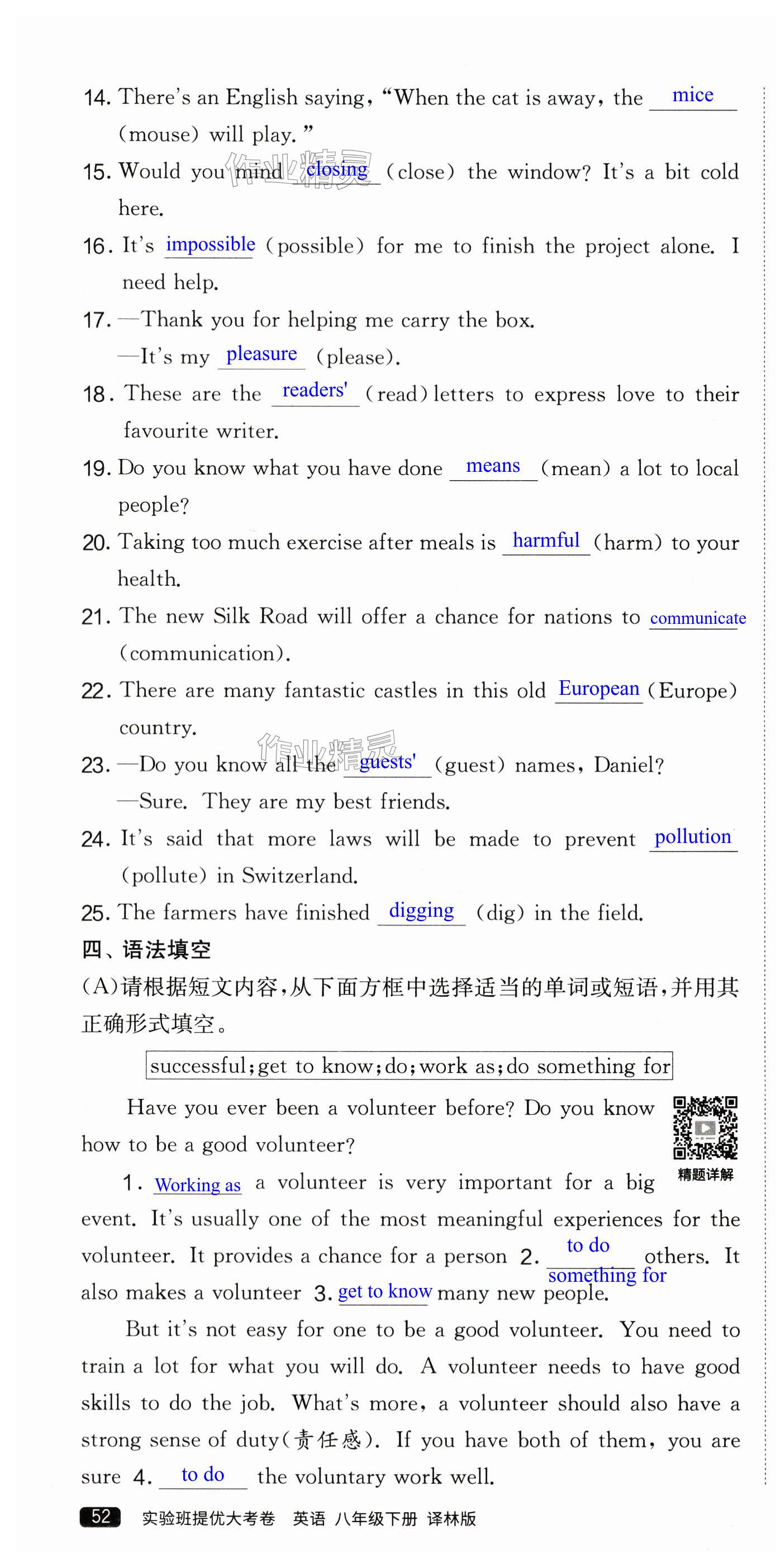 注:目前有些书本章节名称可能整理的还不是很完善,但都是按照顺序排列的,请同学们按照顺序仔细查找。练习册 2024年实验班提优大考卷八年级英语下册译林版 答案主要是用来给同学们做完题方便对答案用的,请勿直接抄袭。