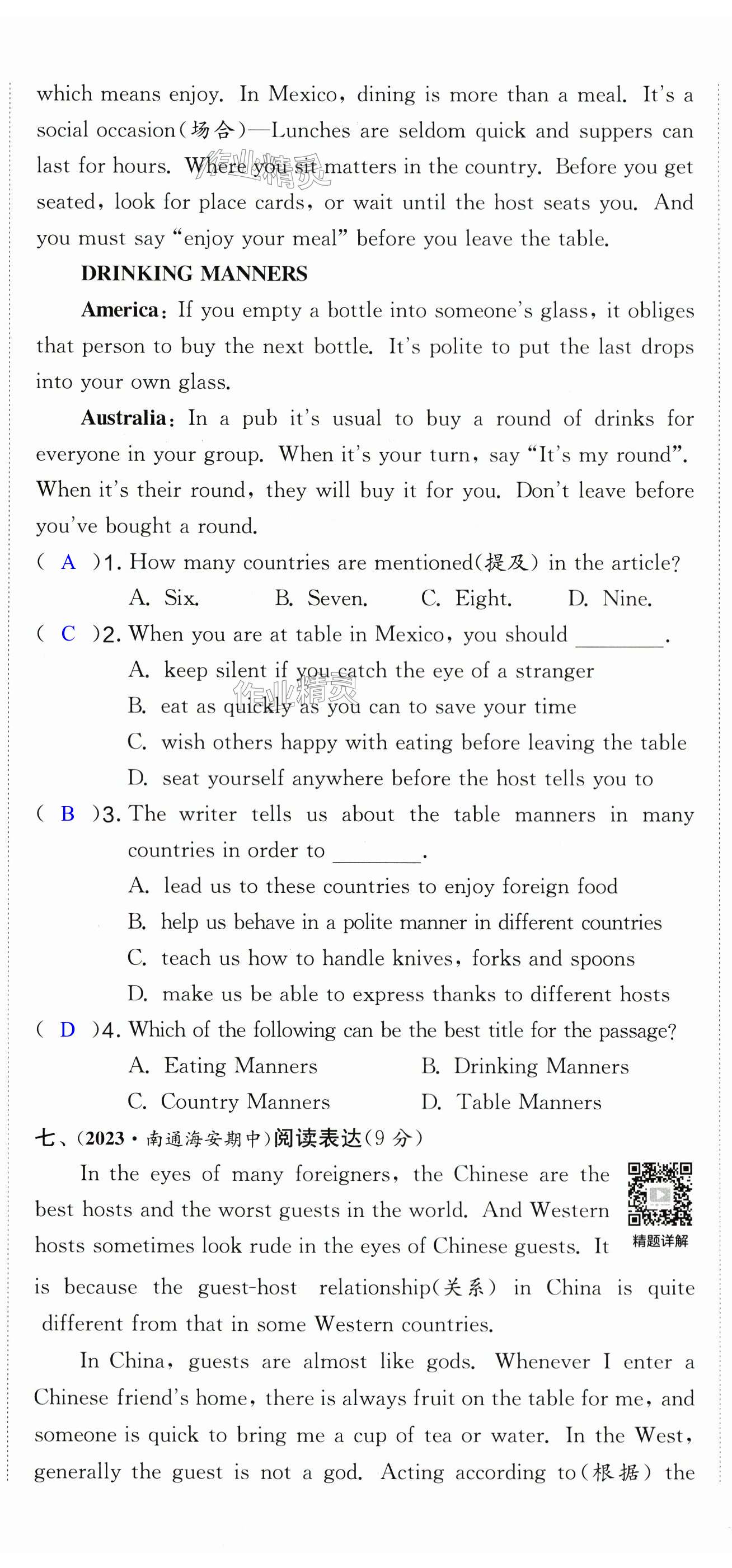 注:目前有些书本章节名称可能整理的还不是很完善,但都是按照顺序排列的,请同学们按照顺序仔细查找。练习册 2024年实验班提优大考卷八年级英语下册译林版 答案主要是用来给同学们做完题方便对答案用的,请勿直接抄袭。