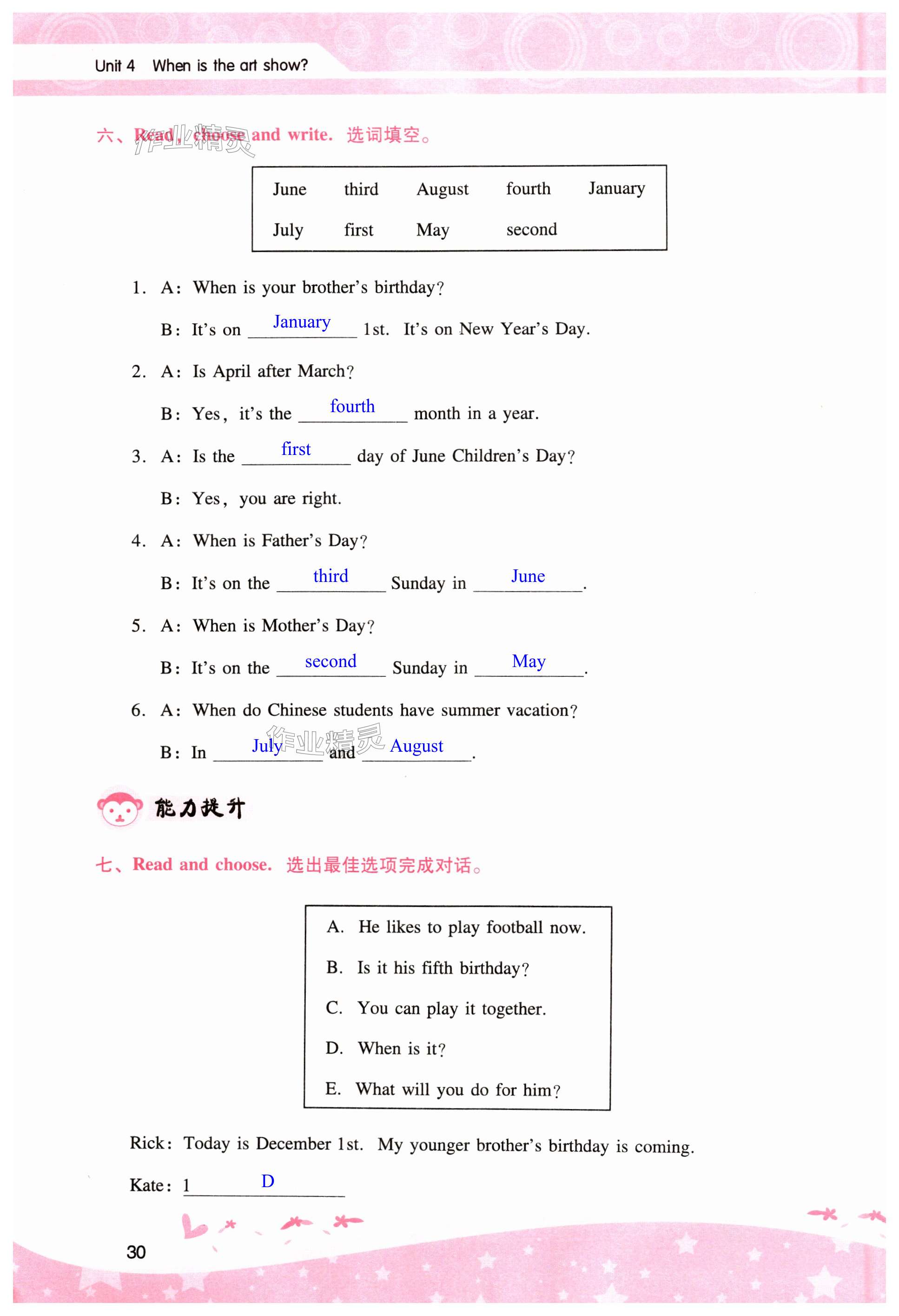 注:目前有些书本章节名称可能整理的还不是很完善,但都是按照顺序排列的,请同学们按照顺序仔细查找。练习册 2024年新课程学习辅导五年级英语下册人教版 答案主要是用来给同学们做完题方便对答案用的,请勿直接抄袭。
