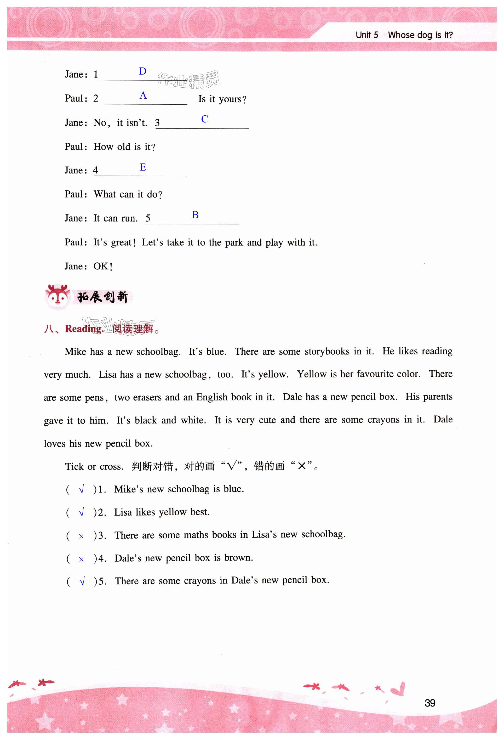 注:目前有些书本章节名称可能整理的还不是很完善,但都是按照顺序排列的,请同学们按照顺序仔细查找。练习册 2024年新课程学习辅导五年级英语下册人教版 答案主要是用来给同学们做完题方便对答案用的,请勿直接抄袭。