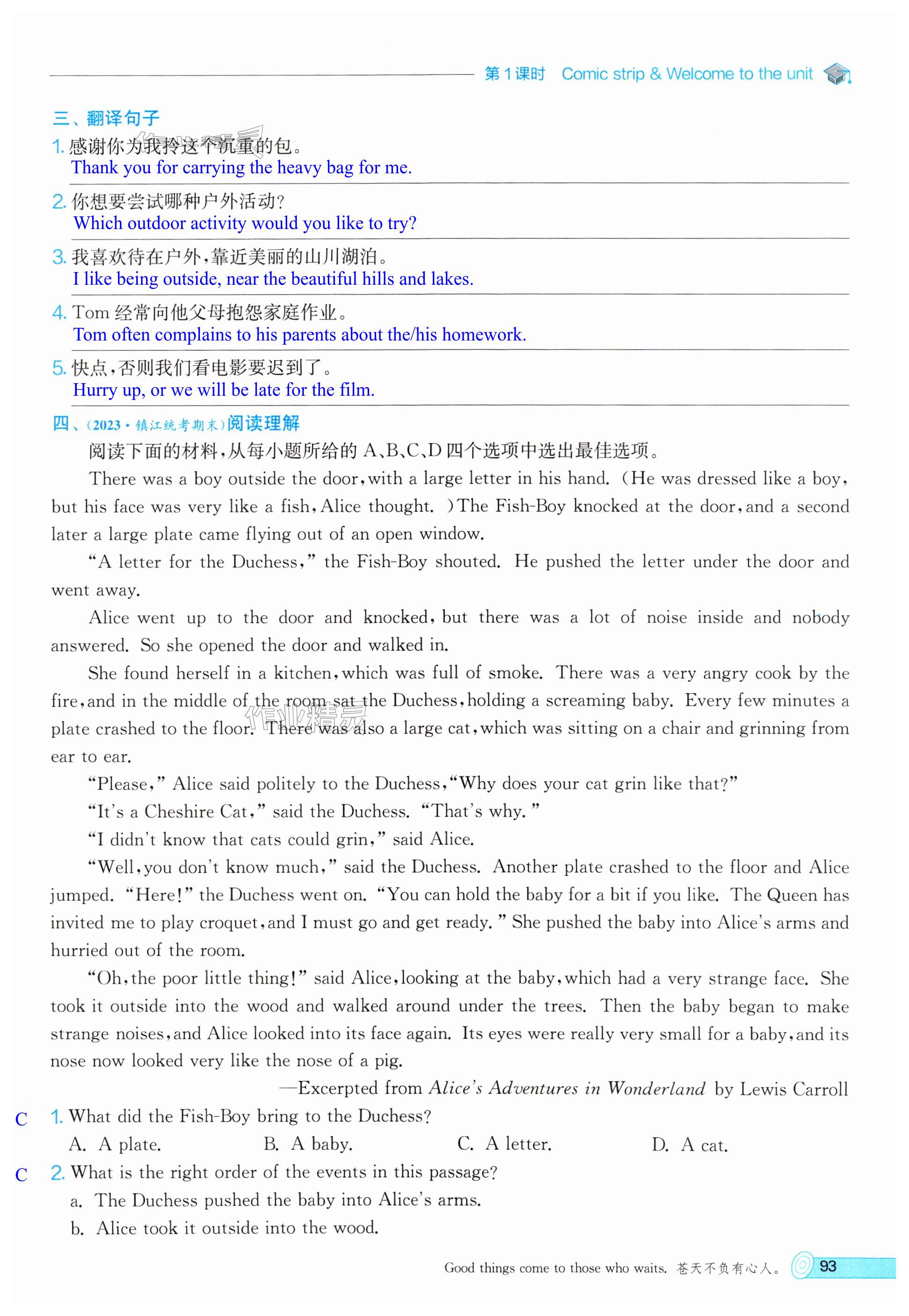 注:目前有些书本章节名称可能整理的还不是很完善,但都是按照顺序排列的,请同学们按照顺序仔细查找。练习册 2024年实验班提优训练全优课课练七年级英语下册译林版扬州专版 答案主要是用来给同学们做完题方便对答案用的,请勿直接抄袭。