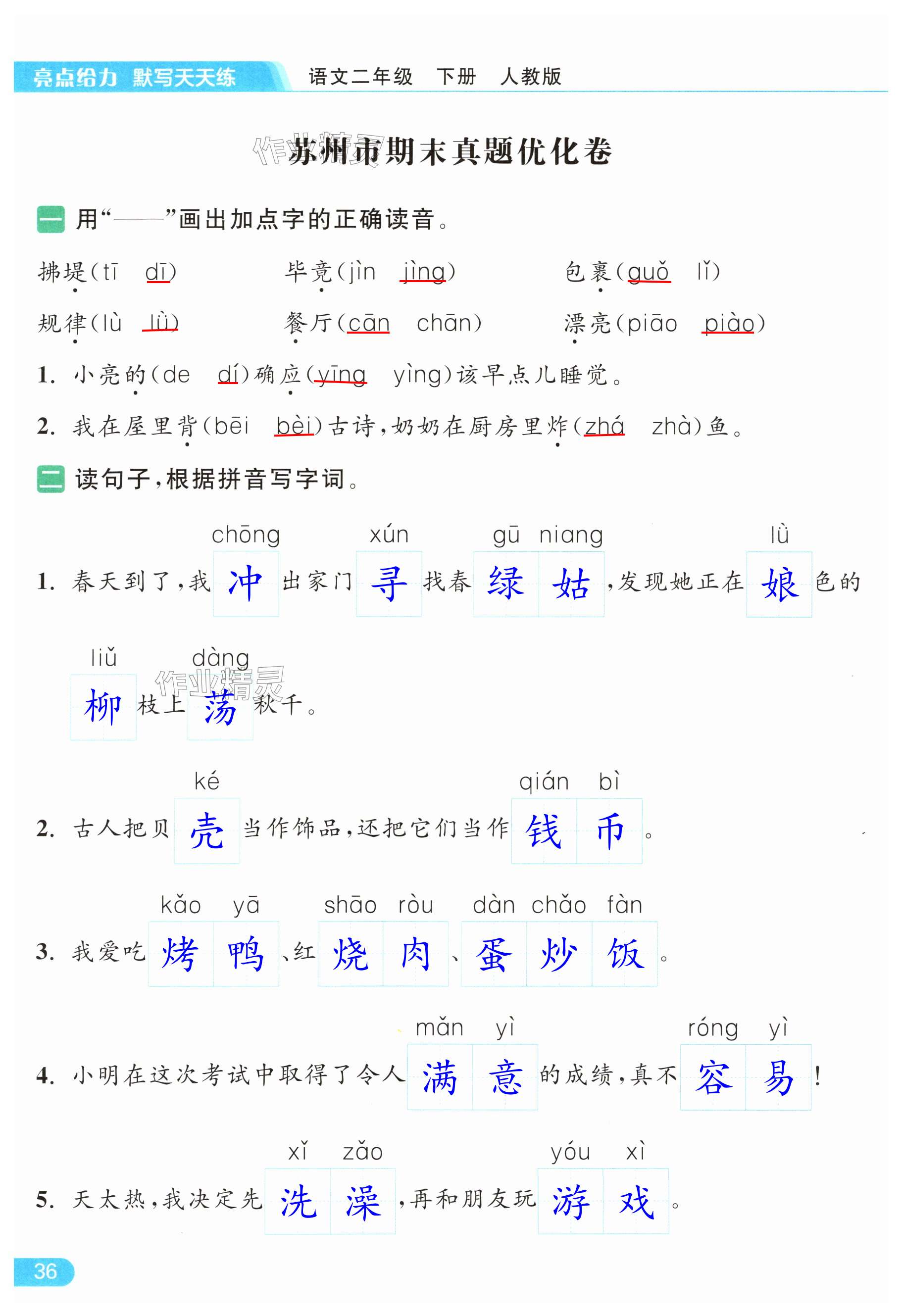 注:目前有些书本章节名称可能整理的还不是很完善,但都是按照顺序排列的,请同学们按照顺序仔细查找。练习册 2024年亮点给力默写天天练二年级语文下册人教版 答案主要是用来给同学们做完题方便对答案用的,请勿直接抄袭。