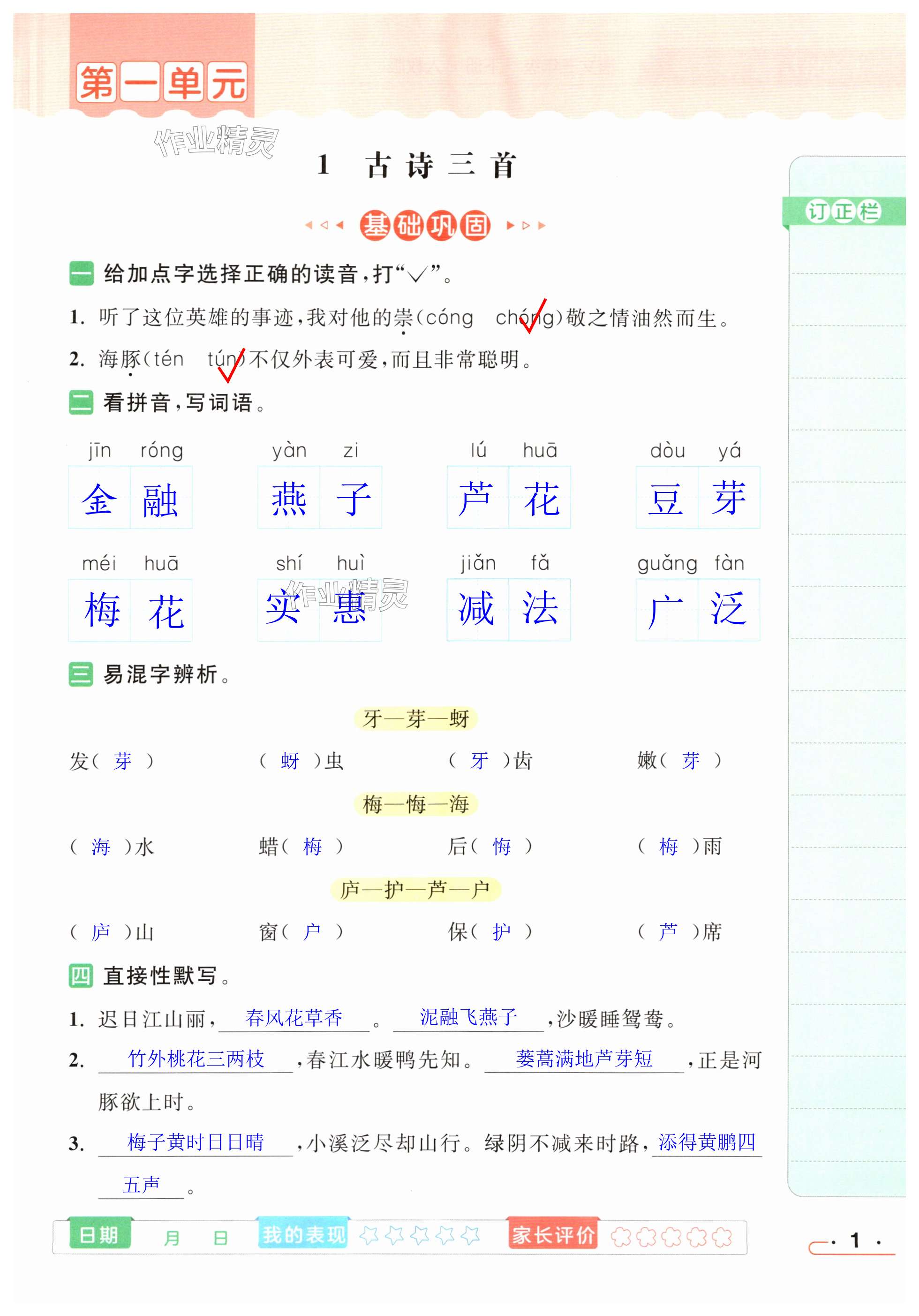 注:目前有些书本章节名称可能整理的还不是很完善,但都是按照顺序排列的,请同学们按照顺序仔细查找。练习册 2024年亮点给力默写天天练三年级语文下册人教版 答案主要是用来给同学们做完题方便对答案用的,请勿直接抄袭。
