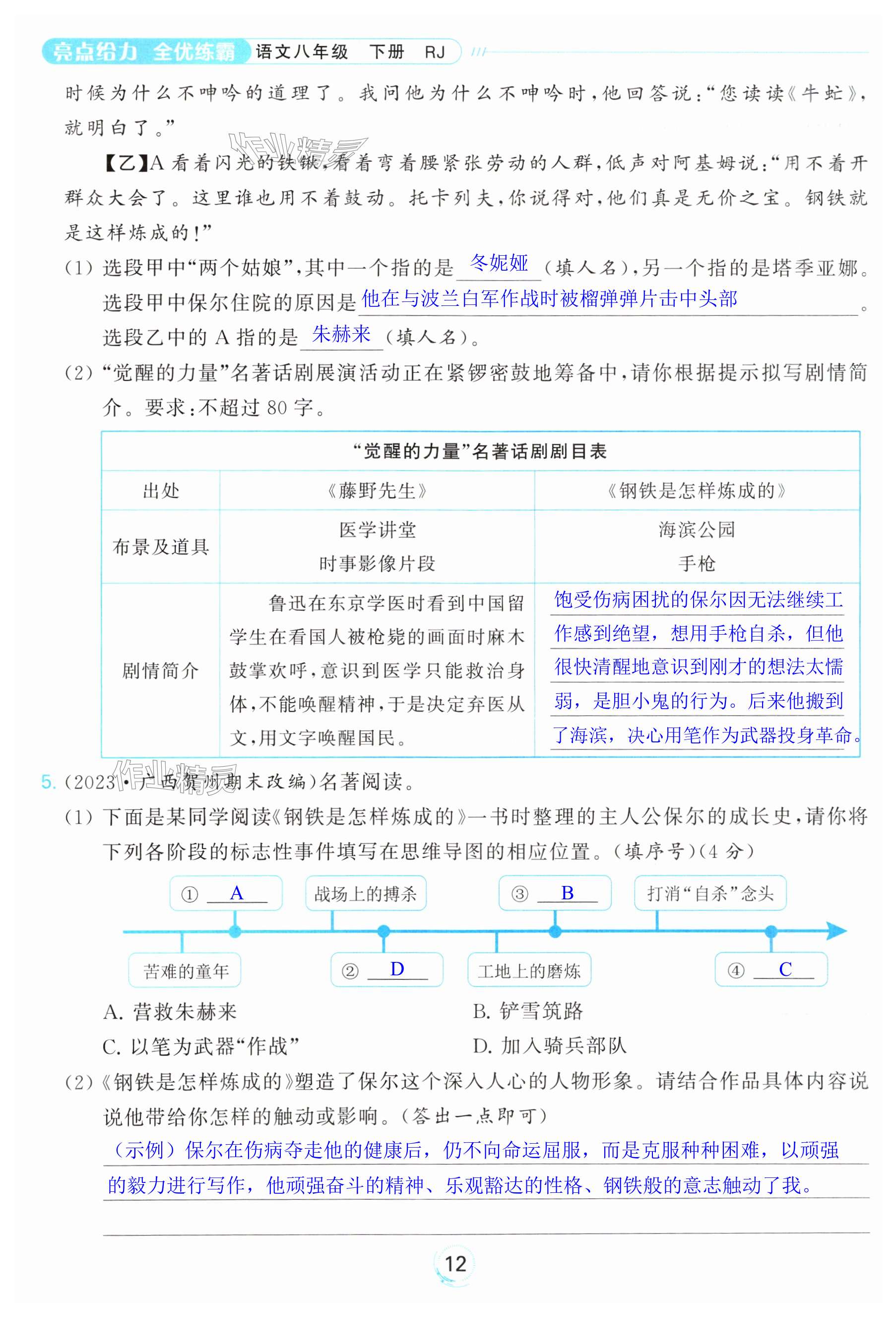 注:目前有些书本章节名称可能整理的还不是很完善,但都是按照顺序排列的,请同学们按照顺序仔细查找。练习册 2024年亮点给力全优练霸八年级语文下册人教版 答案主要是用来给同学们做完题方便对答案用的,请勿直接抄袭。