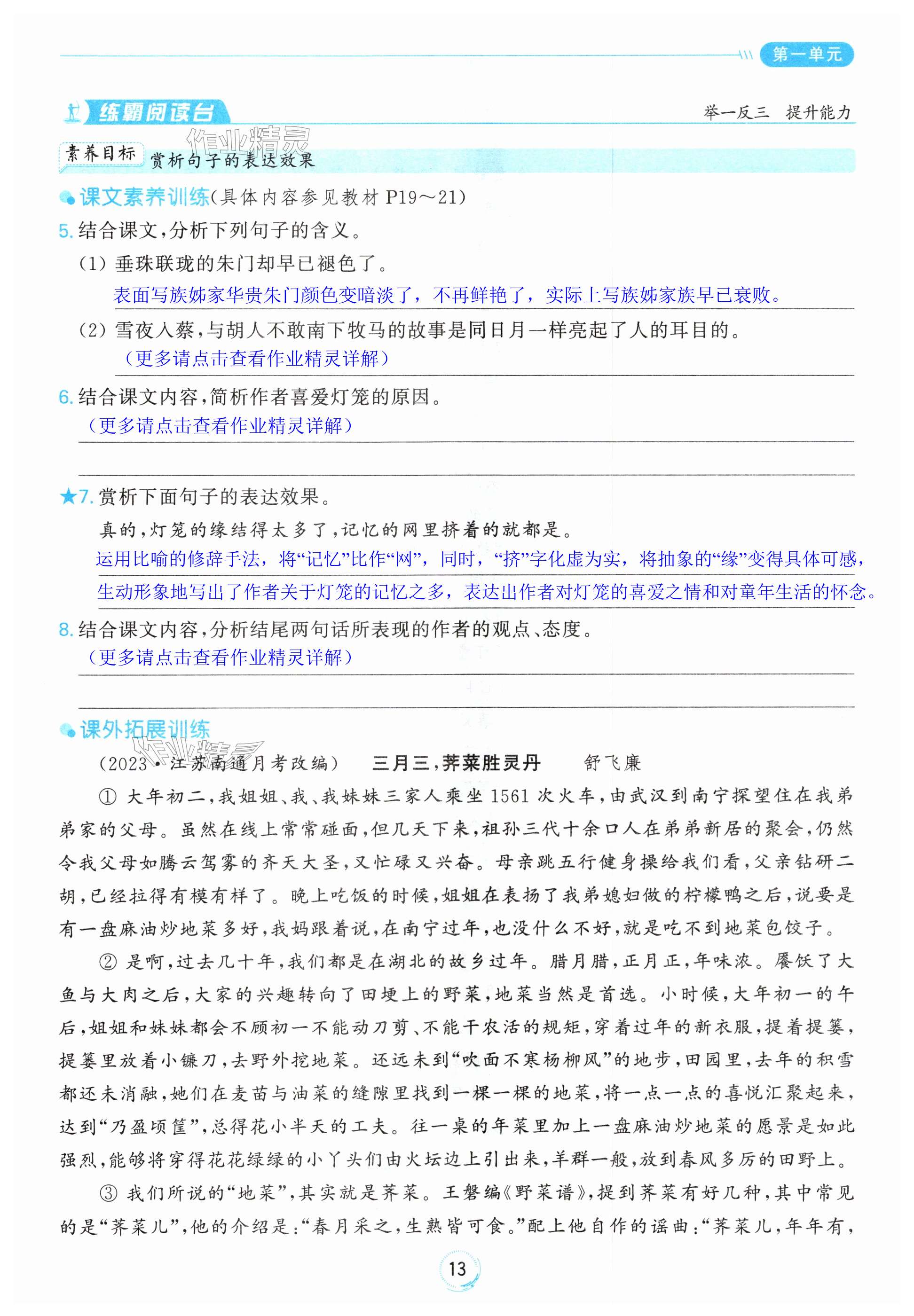 注:目前有些书本章节名称可能整理的还不是很完善,但都是按照顺序排列的,请同学们按照顺序仔细查找。练习册 2024年亮点给力全优练霸八年级语文下册人教版 答案主要是用来给同学们做完题方便对答案用的,请勿直接抄袭。