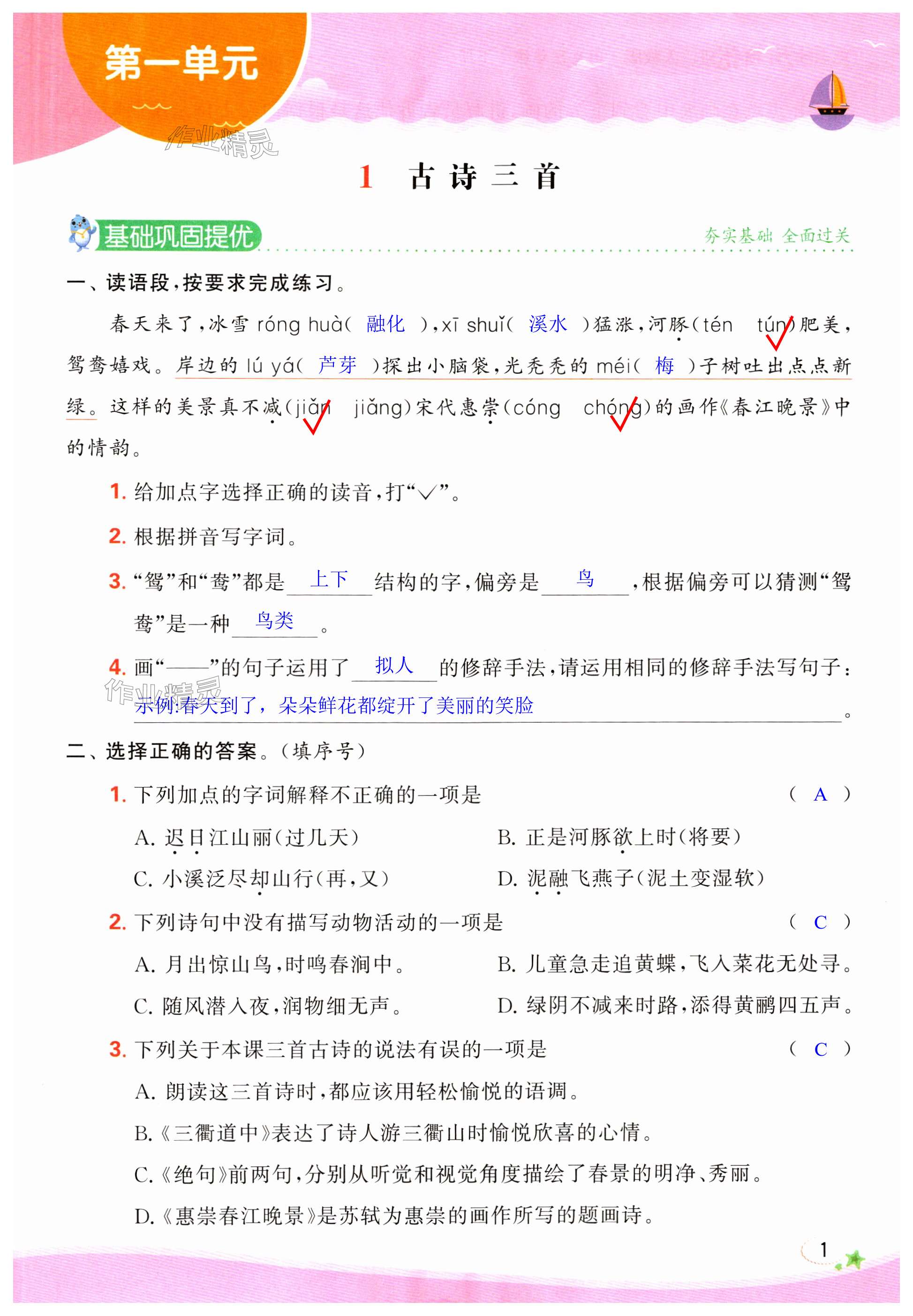 注:目前有些书本章节名称可能整理的还不是很完善,但都是按照顺序排列的,请同学们按照顺序仔细查找。练习册 2024年亮点给力提优班三年级语文下册人教版 答案主要是用来给同学们做完题方便对答案用的,请勿直接抄袭。