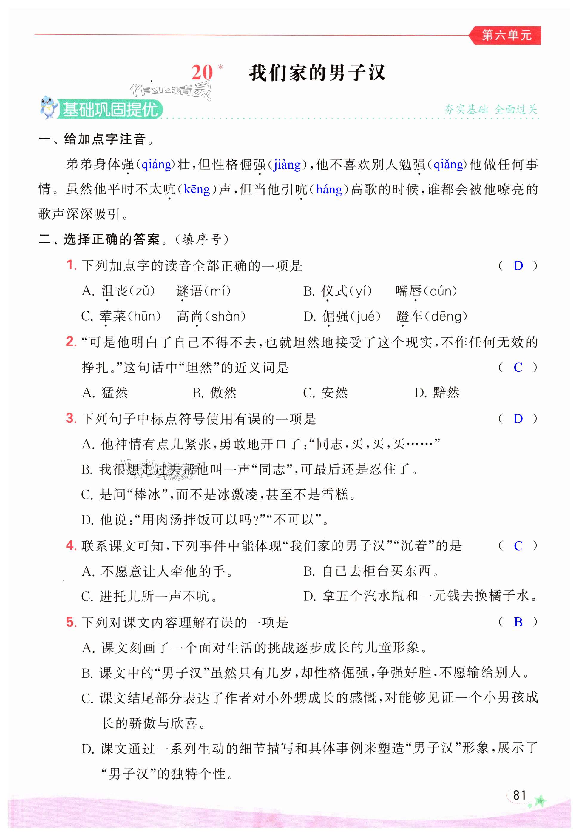 注:目前有些书本章节名称可能整理的还不是很完善,但都是按照顺序排列的,请同学们按照顺序仔细查找。练习册 2024年亮点给力提优班四年级语文下册人教版 答案主要是用来给同学们做完题方便对答案用的,请勿直接抄袭。