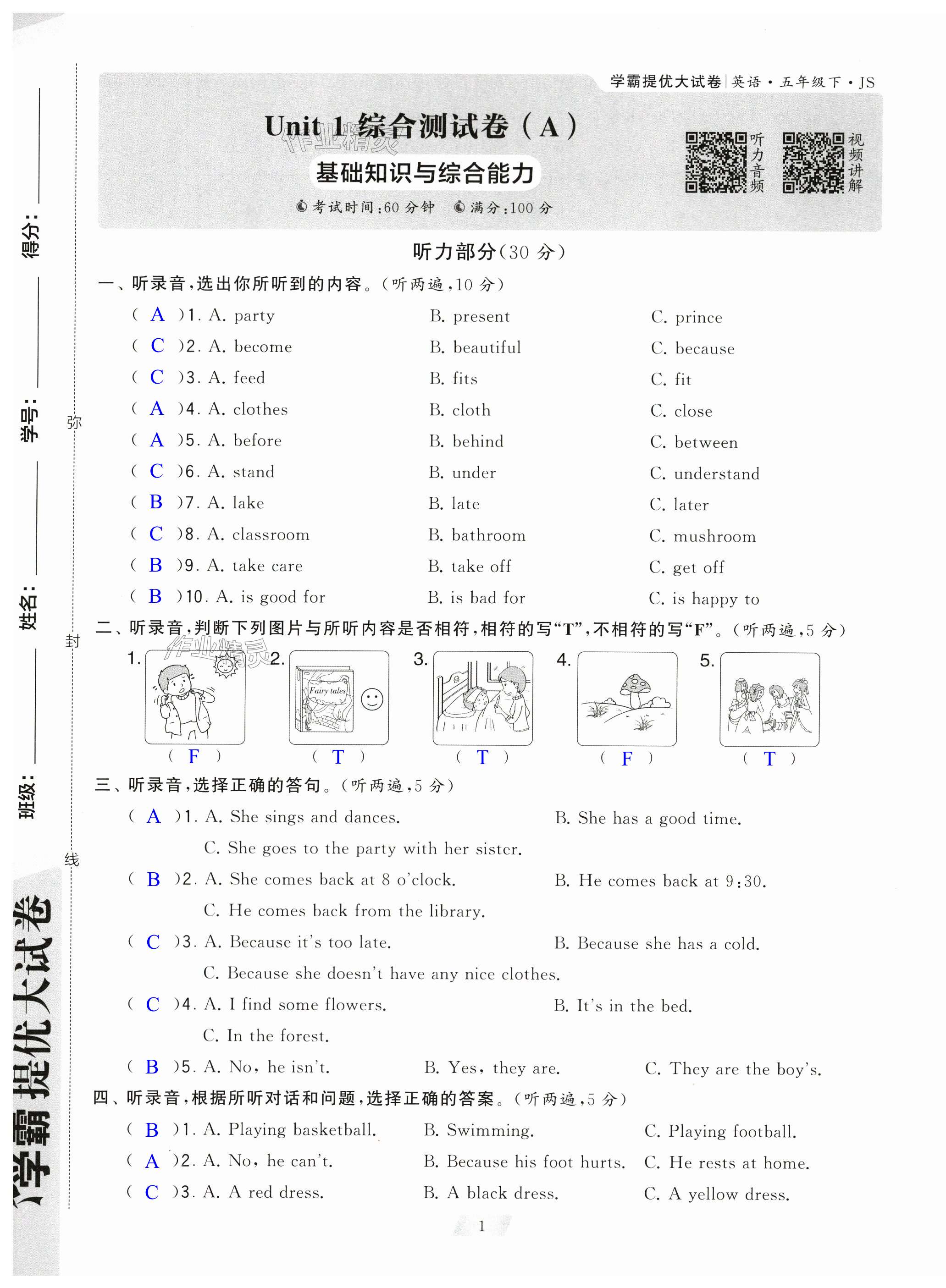 注:目前有些书本章节名称可能整理的还不是很完善,但都是按照顺序排列的,请同学们按照顺序仔细查找。练习册 2024年学霸提优大试卷五年级英语下册译林版 答案主要是用来给同学们做完题方便对答案用的,请勿直接抄袭。