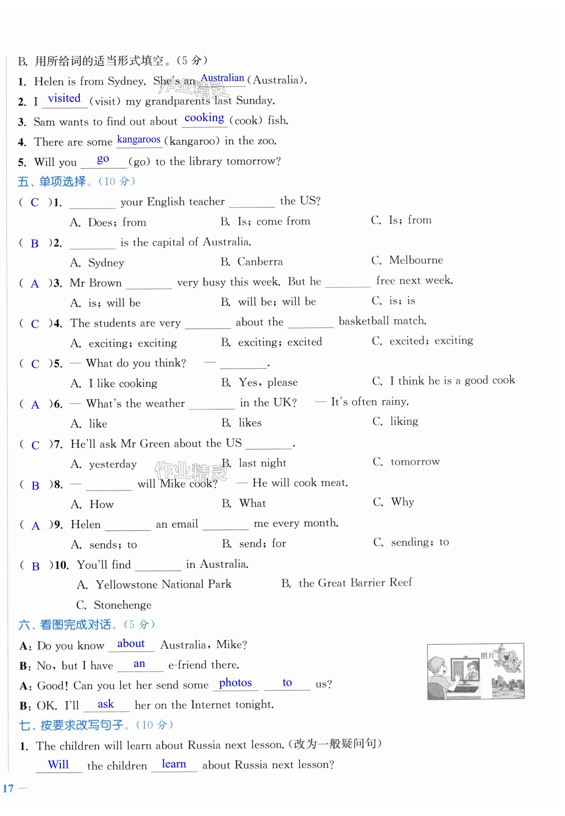 注:目前有些书本章节名称可能整理的还不是很完善,但都是按照顺序排列的,请同学们按照顺序仔细查找。练习册 2024年江苏金考卷六年级英语下册译林版 答案主要是用来给同学们做完题方便对答案用的,请勿直接抄袭。