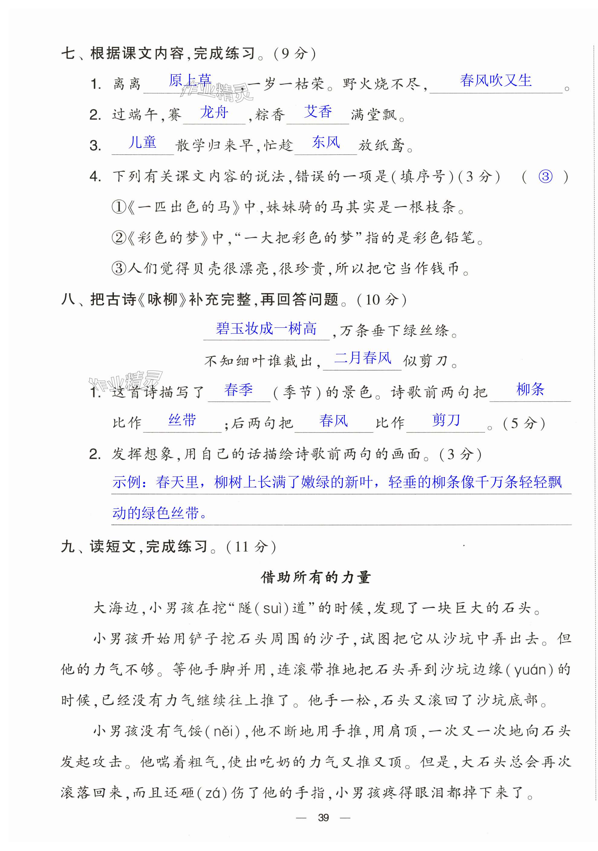 注:目前有些书本章节名称可能整理的还不是很完善,但都是按照顺序排列的,请同学们按照顺序仔细查找。练习册 2024年学霸提优大试卷二年级语文下册人教版 答案主要是用来给同学们做完题方便对答案用的,请勿直接抄袭。