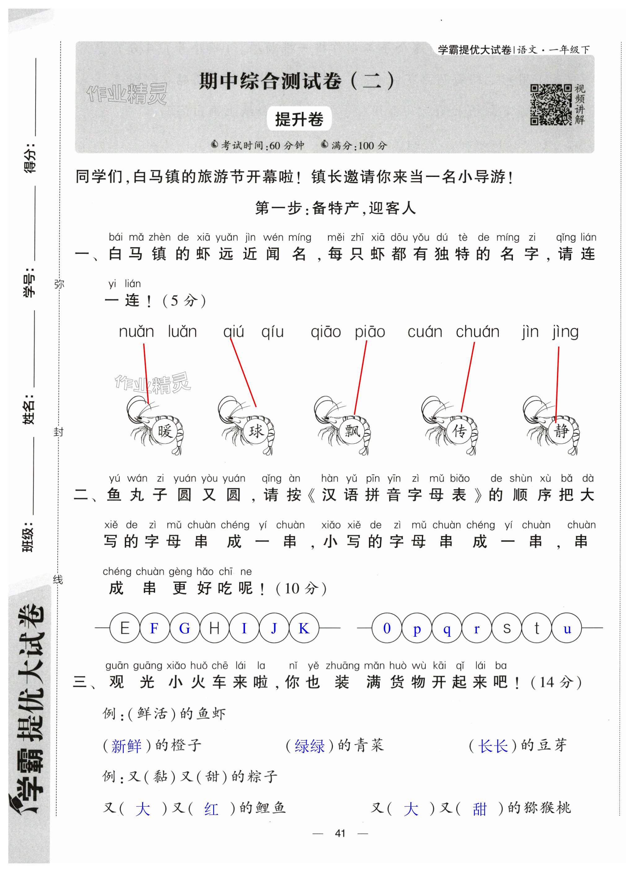 注:目前有些书本章节名称可能整理的还不是很完善,但都是按照顺序排列的,请同学们按照顺序仔细查找。练习册 2024年学霸提优大试卷一年级语文下册人教版 答案主要是用来给同学们做完题方便对答案用的,请勿直接抄袭。
