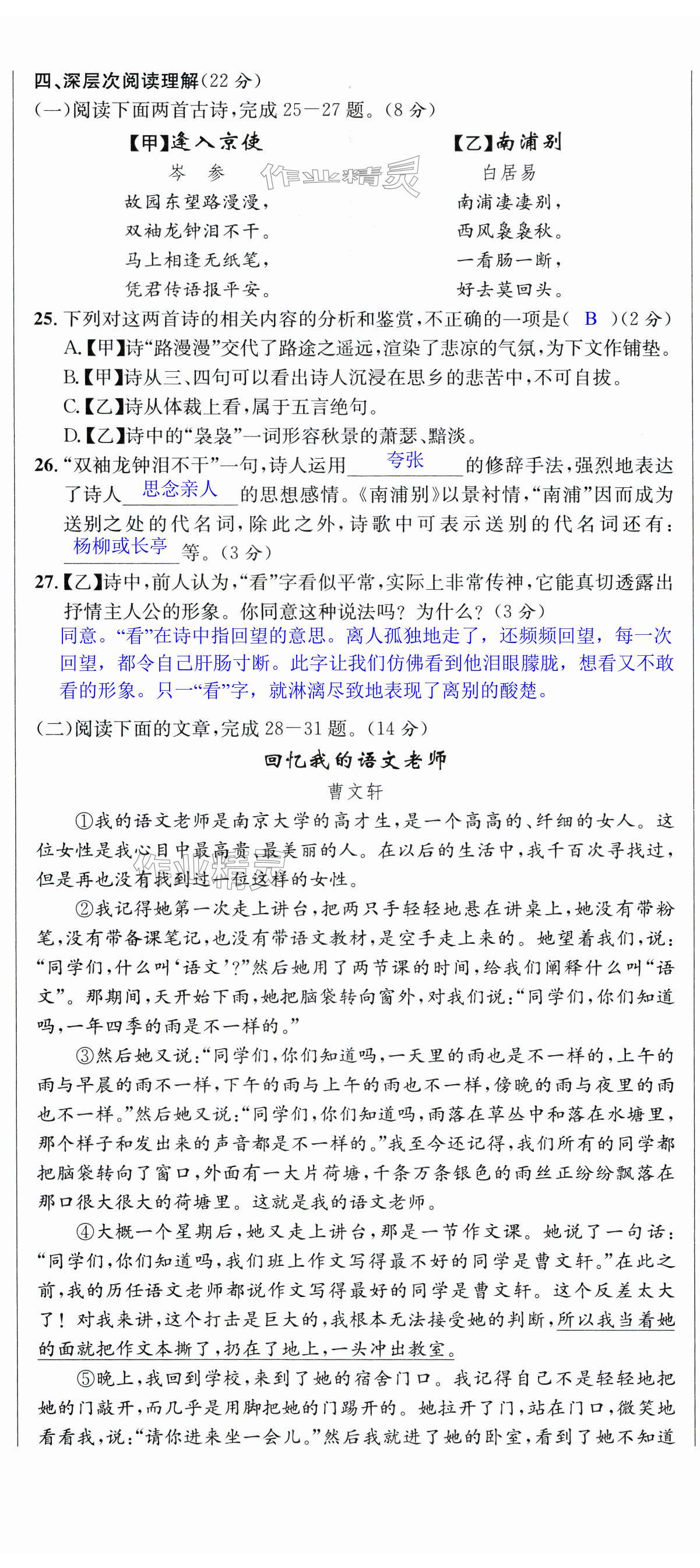 注:目前有些书本章节名称可能整理的还不是很完善,但都是按照顺序排列的,请同学们按照顺序仔细查找。练习册 2024年课时夺冠七年级语文下册人教版 答案主要是用来给同学们做完题方便对答案用的,请勿直接抄袭。