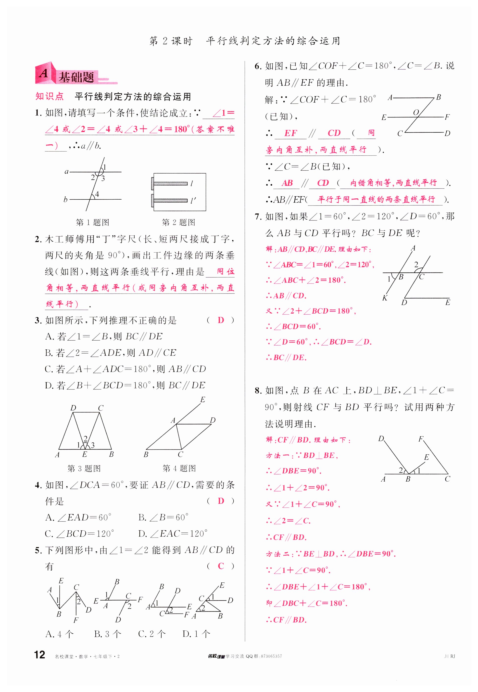 注:目前有些书本章节名称可能整理的还不是很完善,但都是按照顺序排列的,请同学们按照顺序仔细查找。练习册 2024年名校课堂七年级数学下册人教版四川专版 答案主要是用来给同学们做完题方便对答案用的,请勿直接抄袭。