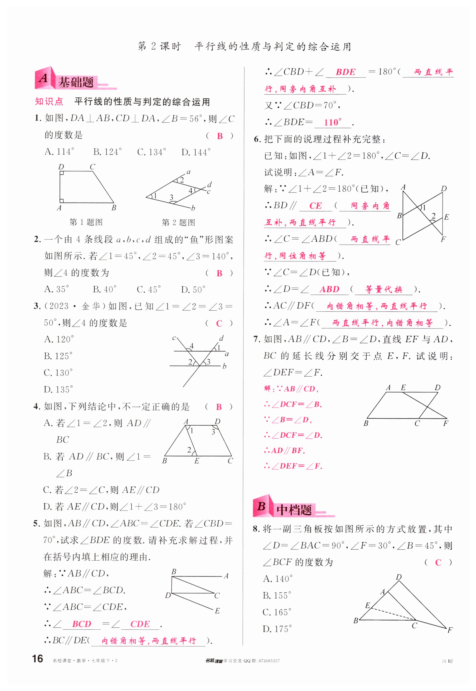注:目前有些书本章节名称可能整理的还不是很完善,但都是按照顺序排列的,请同学们按照顺序仔细查找。练习册 2024年名校课堂七年级数学下册人教版四川专版 答案主要是用来给同学们做完题方便对答案用的,请勿直接抄袭。
