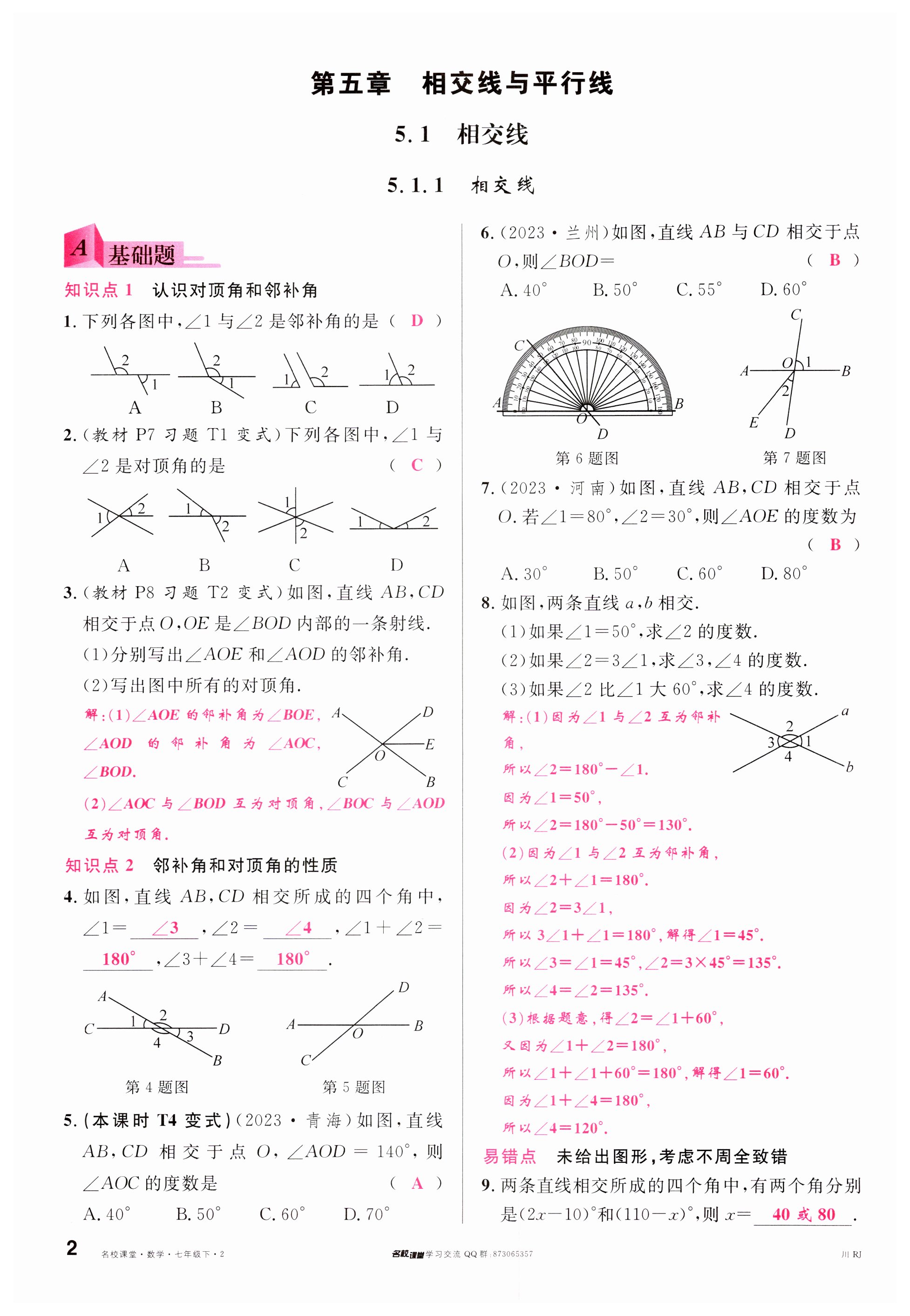 注:目前有些书本章节名称可能整理的还不是很完善,但都是按照顺序排列的,请同学们按照顺序仔细查找。练习册 2024年名校课堂七年级数学下册人教版四川专版 答案主要是用来给同学们做完题方便对答案用的,请勿直接抄袭。