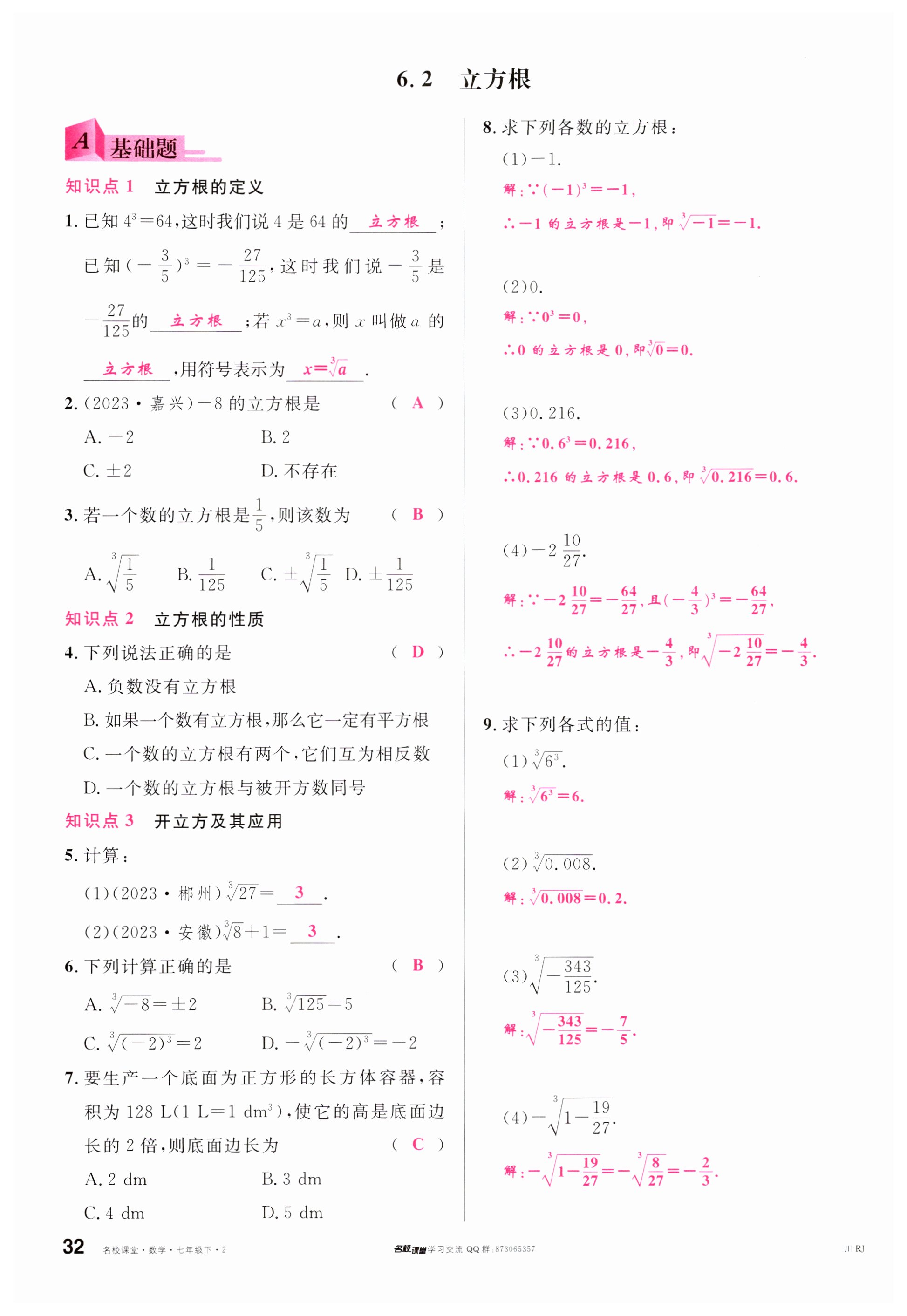 注:目前有些书本章节名称可能整理的还不是很完善,但都是按照顺序排列的,请同学们按照顺序仔细查找。练习册 2024年名校课堂七年级数学下册人教版四川专版 答案主要是用来给同学们做完题方便对答案用的,请勿直接抄袭。