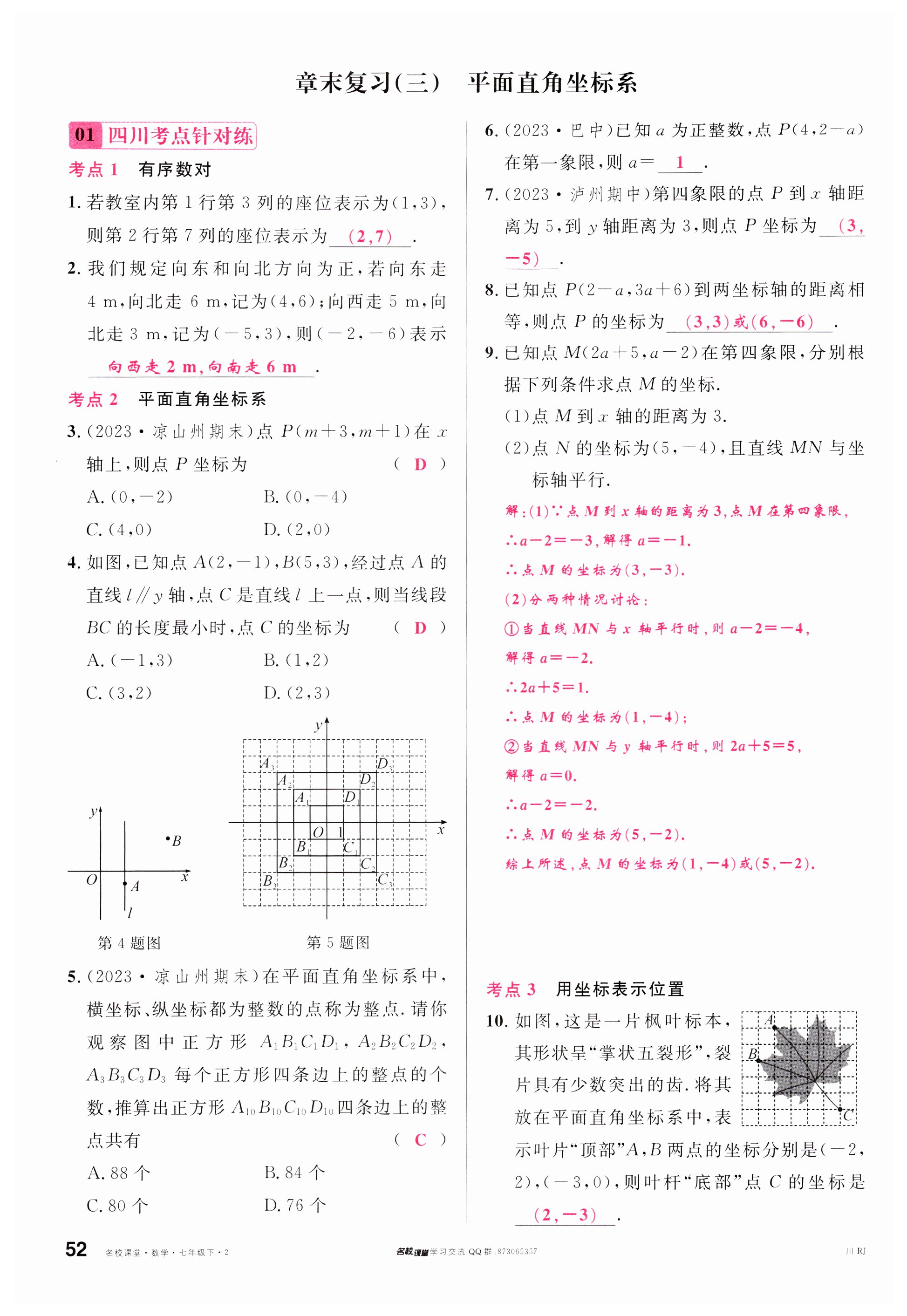 注:目前有些书本章节名称可能整理的还不是很完善,但都是按照顺序排列的,请同学们按照顺序仔细查找。练习册 2024年名校课堂七年级数学下册人教版四川专版 答案主要是用来给同学们做完题方便对答案用的,请勿直接抄袭。