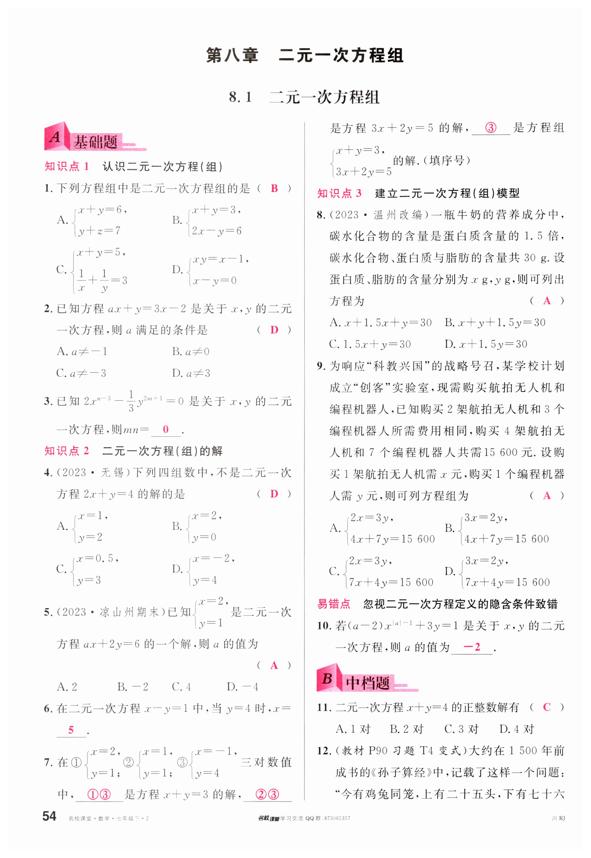 注:目前有些书本章节名称可能整理的还不是很完善,但都是按照顺序排列的,请同学们按照顺序仔细查找。练习册 2024年名校课堂七年级数学下册人教版四川专版 答案主要是用来给同学们做完题方便对答案用的,请勿直接抄袭。