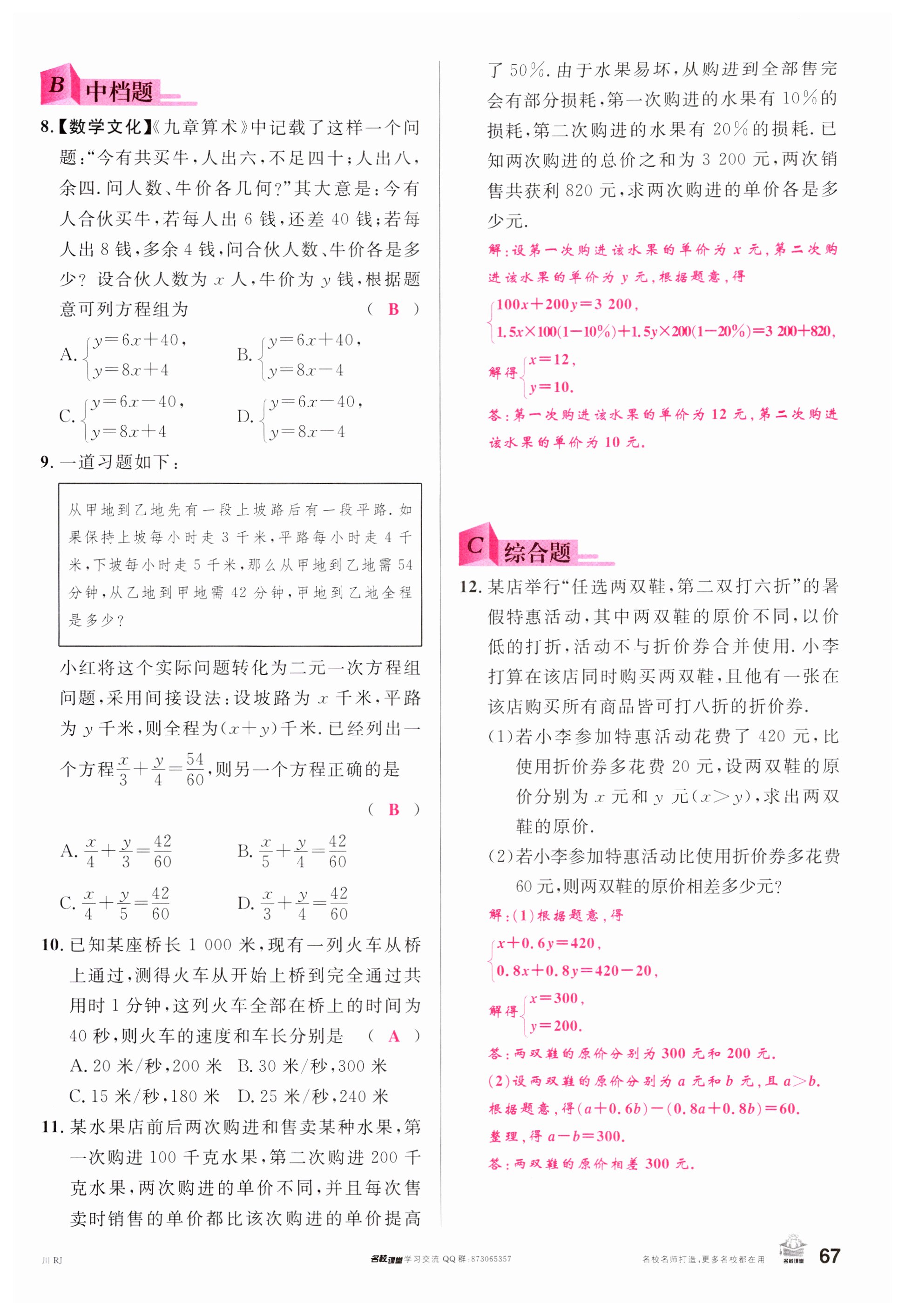 注:目前有些书本章节名称可能整理的还不是很完善,但都是按照顺序排列的,请同学们按照顺序仔细查找。练习册 2024年名校课堂七年级数学下册人教版四川专版 答案主要是用来给同学们做完题方便对答案用的,请勿直接抄袭。