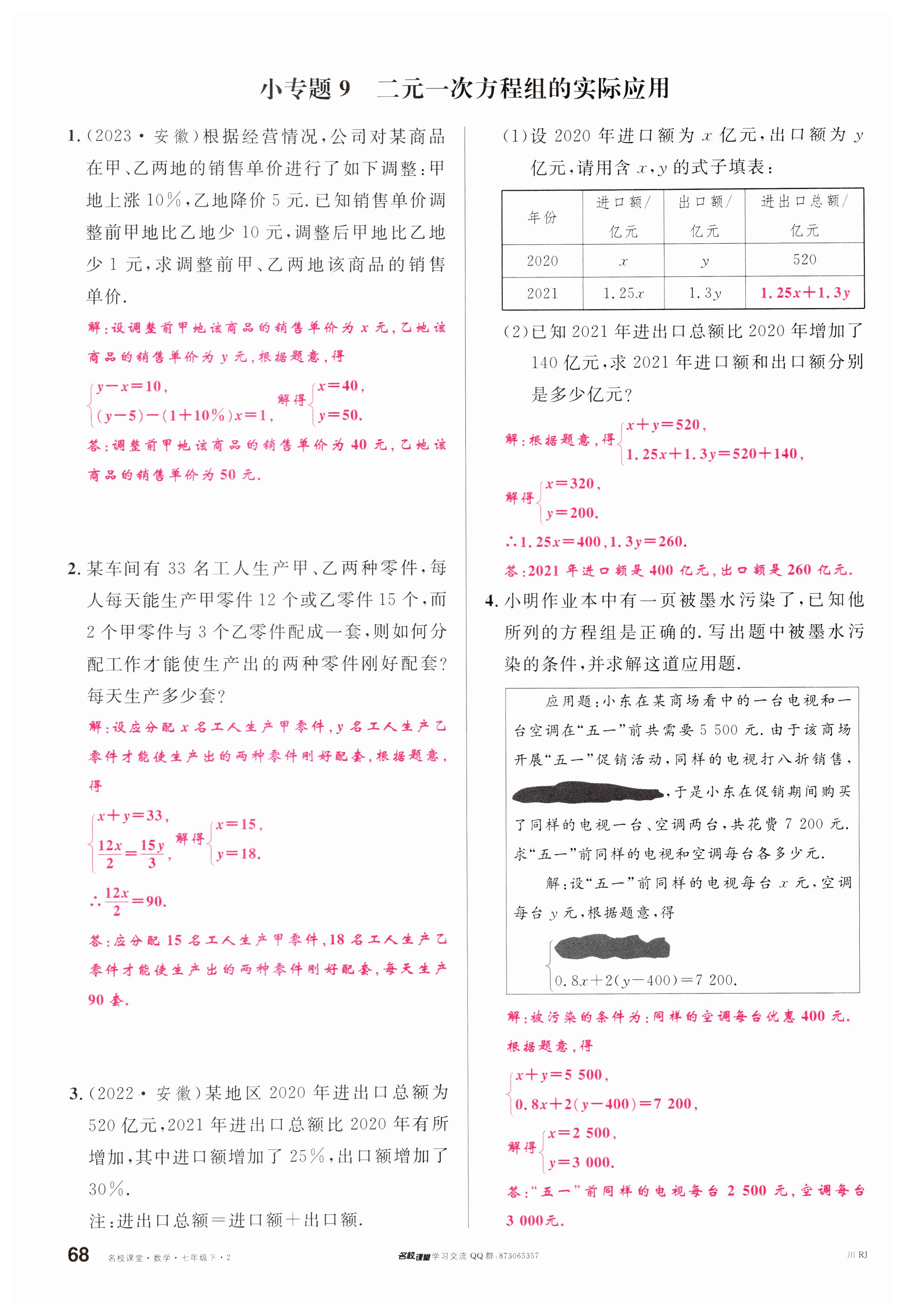 注:目前有些书本章节名称可能整理的还不是很完善,但都是按照顺序排列的,请同学们按照顺序仔细查找。练习册 2024年名校课堂七年级数学下册人教版四川专版 答案主要是用来给同学们做完题方便对答案用的,请勿直接抄袭。