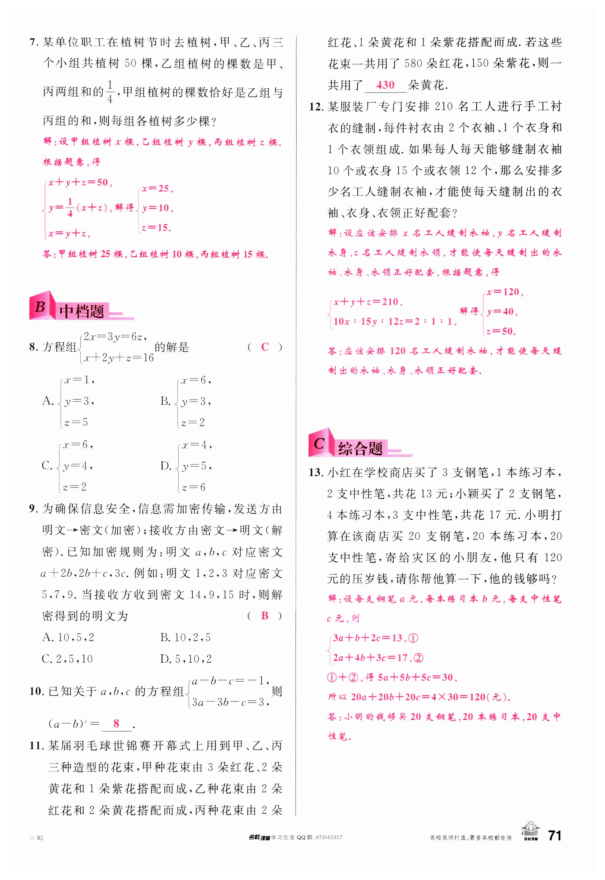 注:目前有些书本章节名称可能整理的还不是很完善,但都是按照顺序排列的,请同学们按照顺序仔细查找。练习册 2024年名校课堂七年级数学下册人教版四川专版 答案主要是用来给同学们做完题方便对答案用的,请勿直接抄袭。