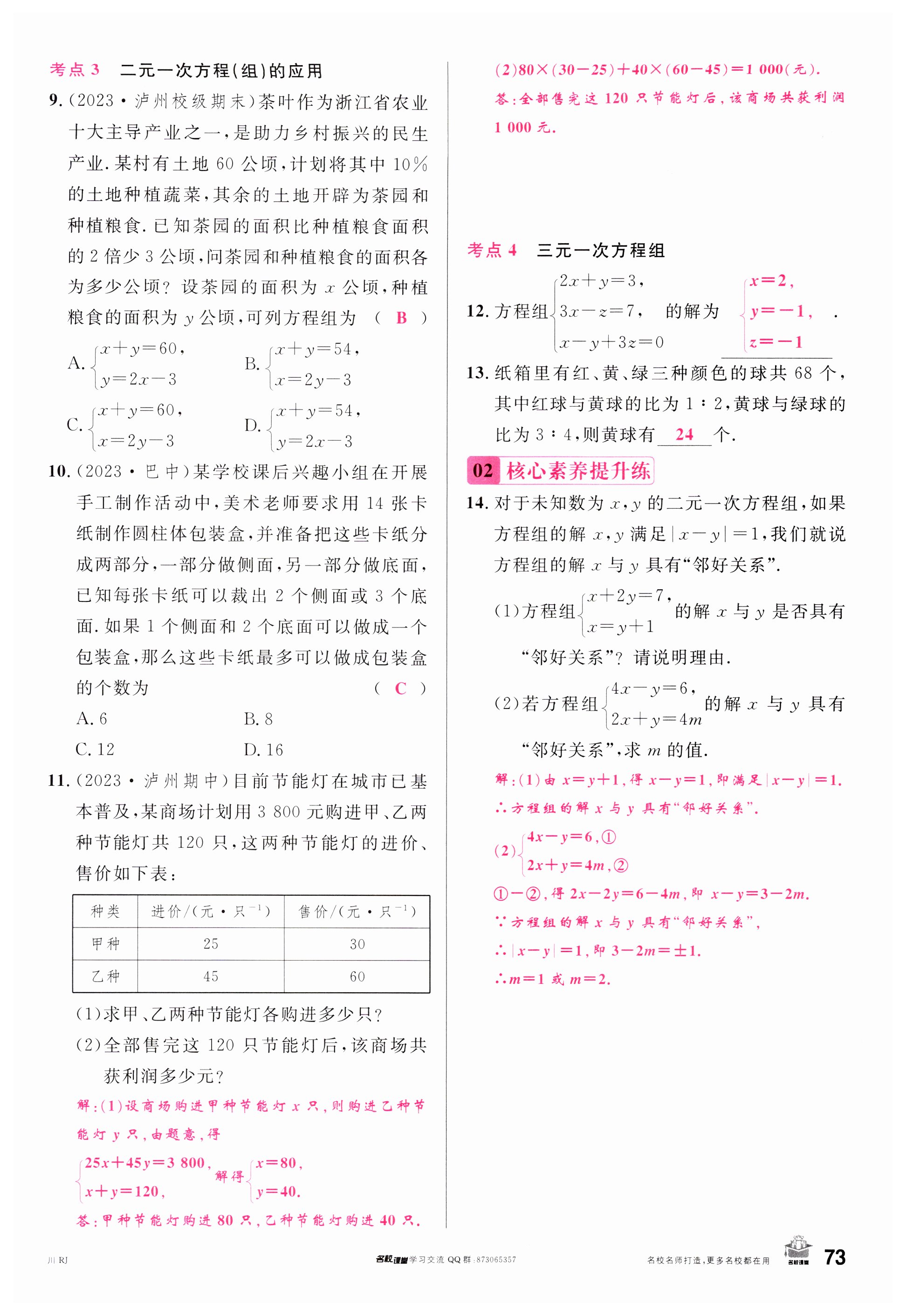 注:目前有些书本章节名称可能整理的还不是很完善,但都是按照顺序排列的,请同学们按照顺序仔细查找。练习册 2024年名校课堂七年级数学下册人教版四川专版 答案主要是用来给同学们做完题方便对答案用的,请勿直接抄袭。