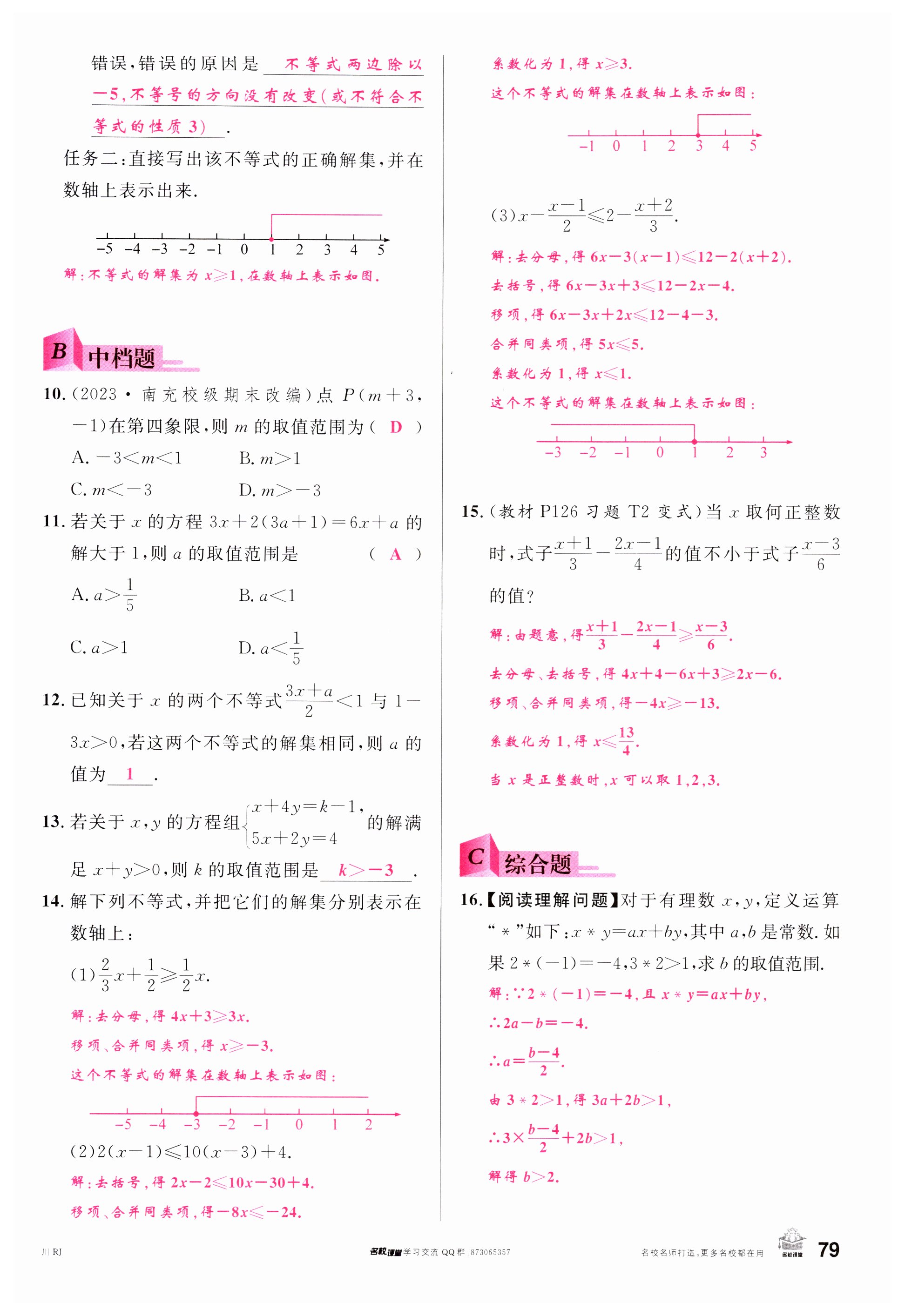 注:目前有些书本章节名称可能整理的还不是很完善,但都是按照顺序排列的,请同学们按照顺序仔细查找。练习册 2024年名校课堂七年级数学下册人教版四川专版 答案主要是用来给同学们做完题方便对答案用的,请勿直接抄袭。