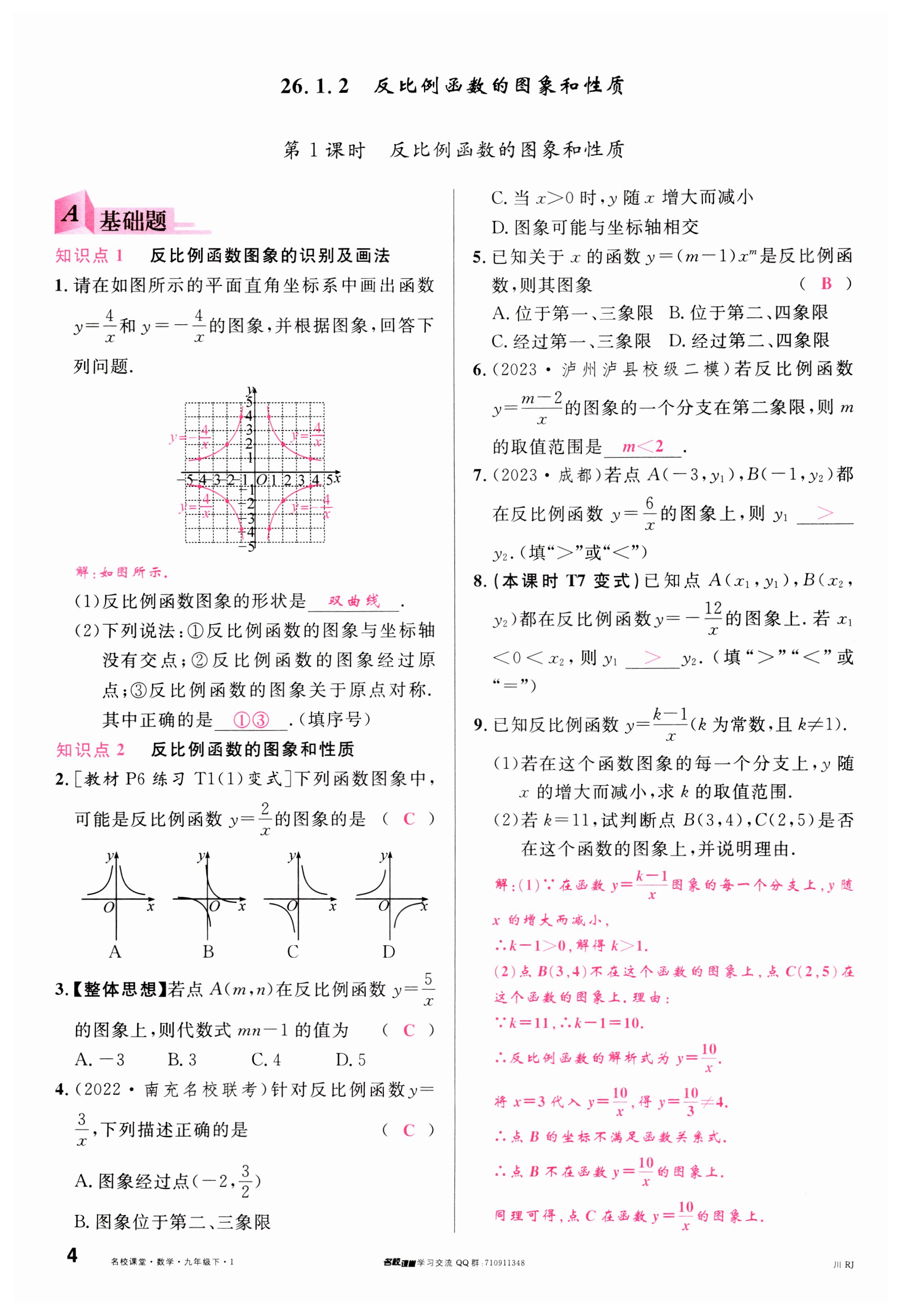 注:目前有些书本章节名称可能整理的还不是很完善,但都是按照顺序排列的,请同学们按照顺序仔细查找。练习册 2024年名校课堂九年级数学下册人教版1四川专版 答案主要是用来给同学们做完题方便对答案用的,请勿直接抄袭。
