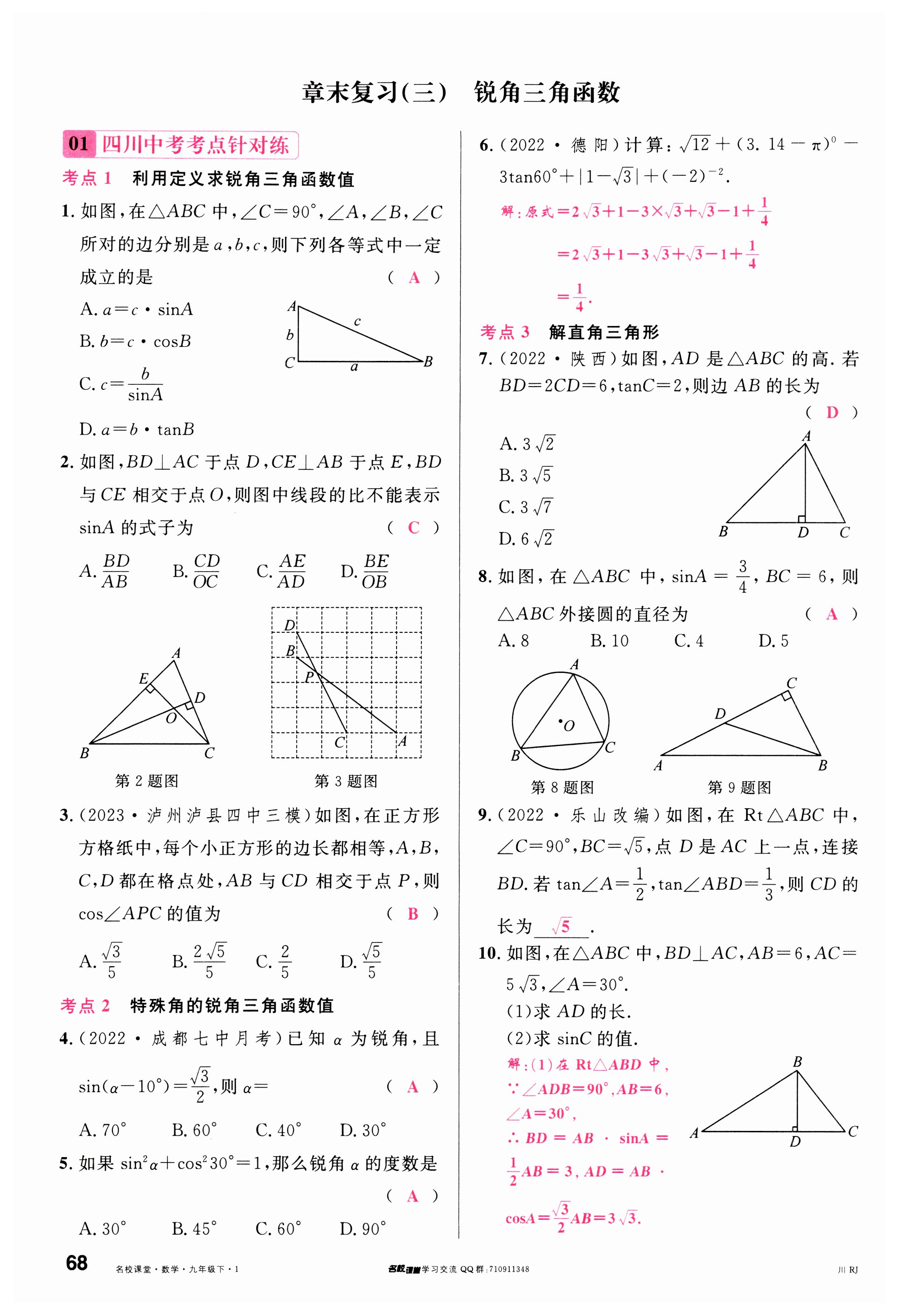 《2024年名校课堂九年级数学下册人教版1四川专版》