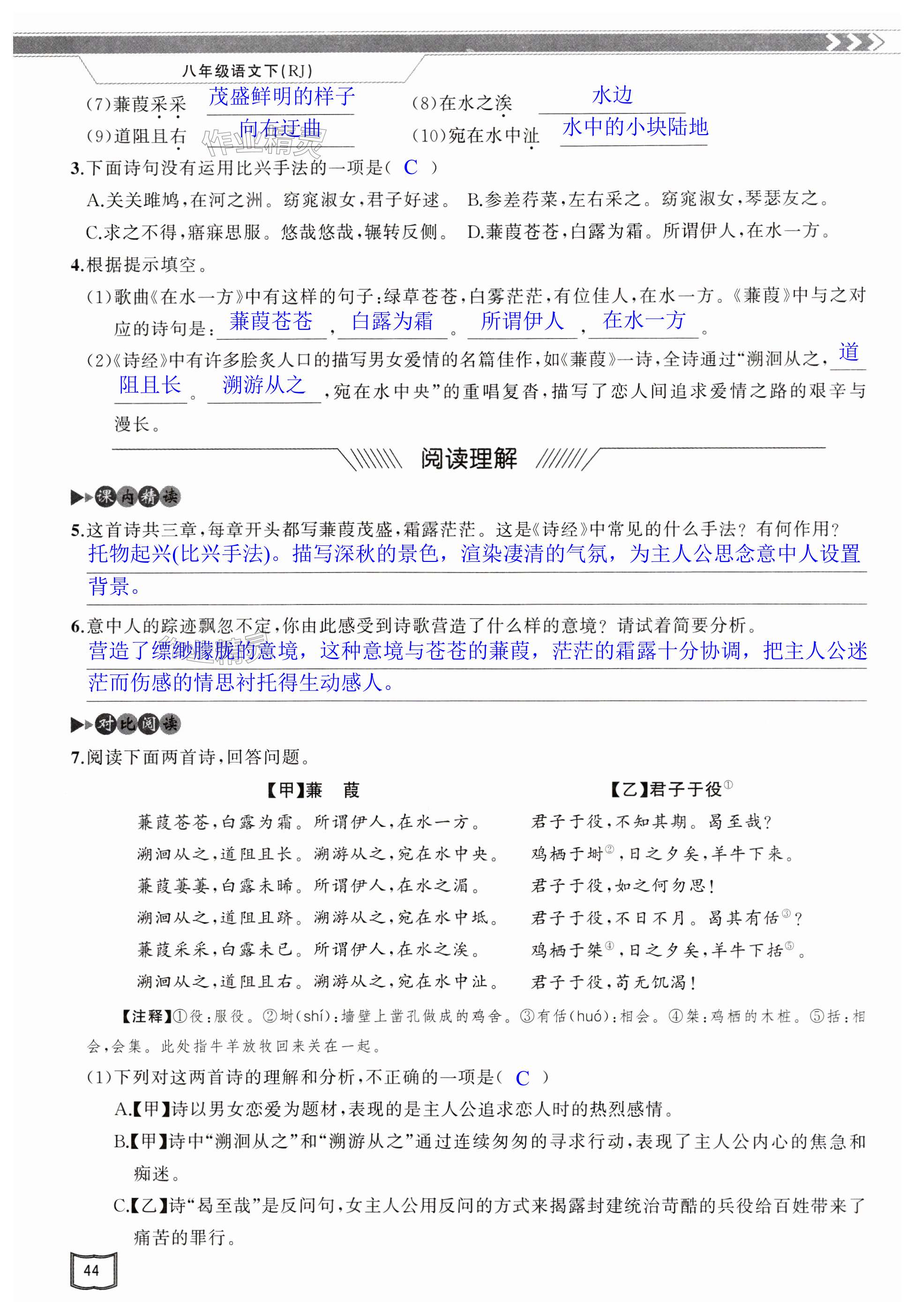 注:目前有些书本章节名称可能整理的还不是很完善,但都是按照顺序排列的,请同学们按照顺序仔细查找。练习册 2024年原创新课堂八年级语文下册人教版红品谷 答案主要是用来给同学们做完题方便对答案用的,请勿直接抄袭。