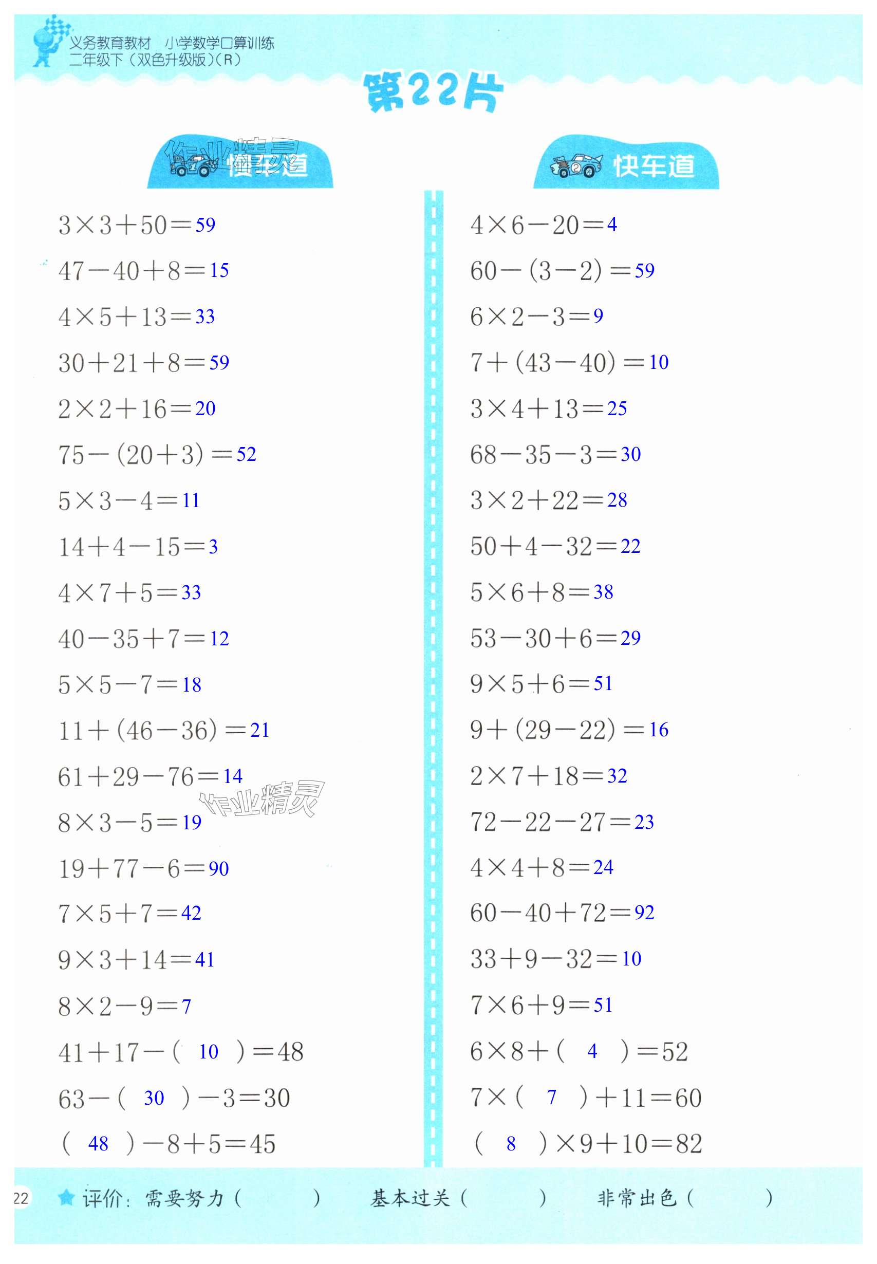 《2024年口算训练二年级数学下册人教版双色升级版》