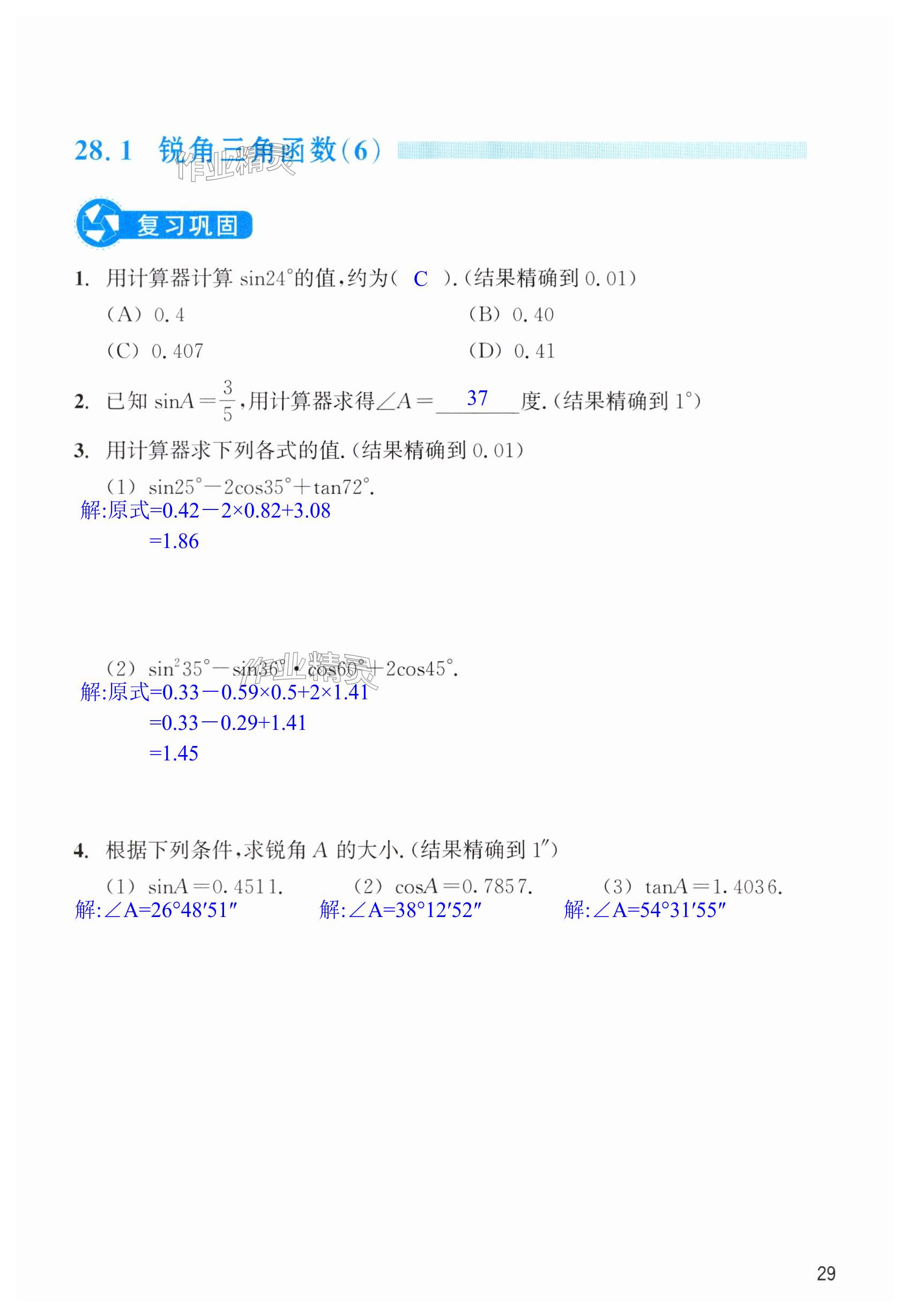 注:目前有些书本章节名称可能整理的还不是很完善,但都是按照顺序排列的,请同学们按照顺序仔细查找。练习册 2024年作业本浙江教育出版社九年级数学下册人教版 答案主要是用来给同学们做完题方便对答案用的,请勿直接抄袭。