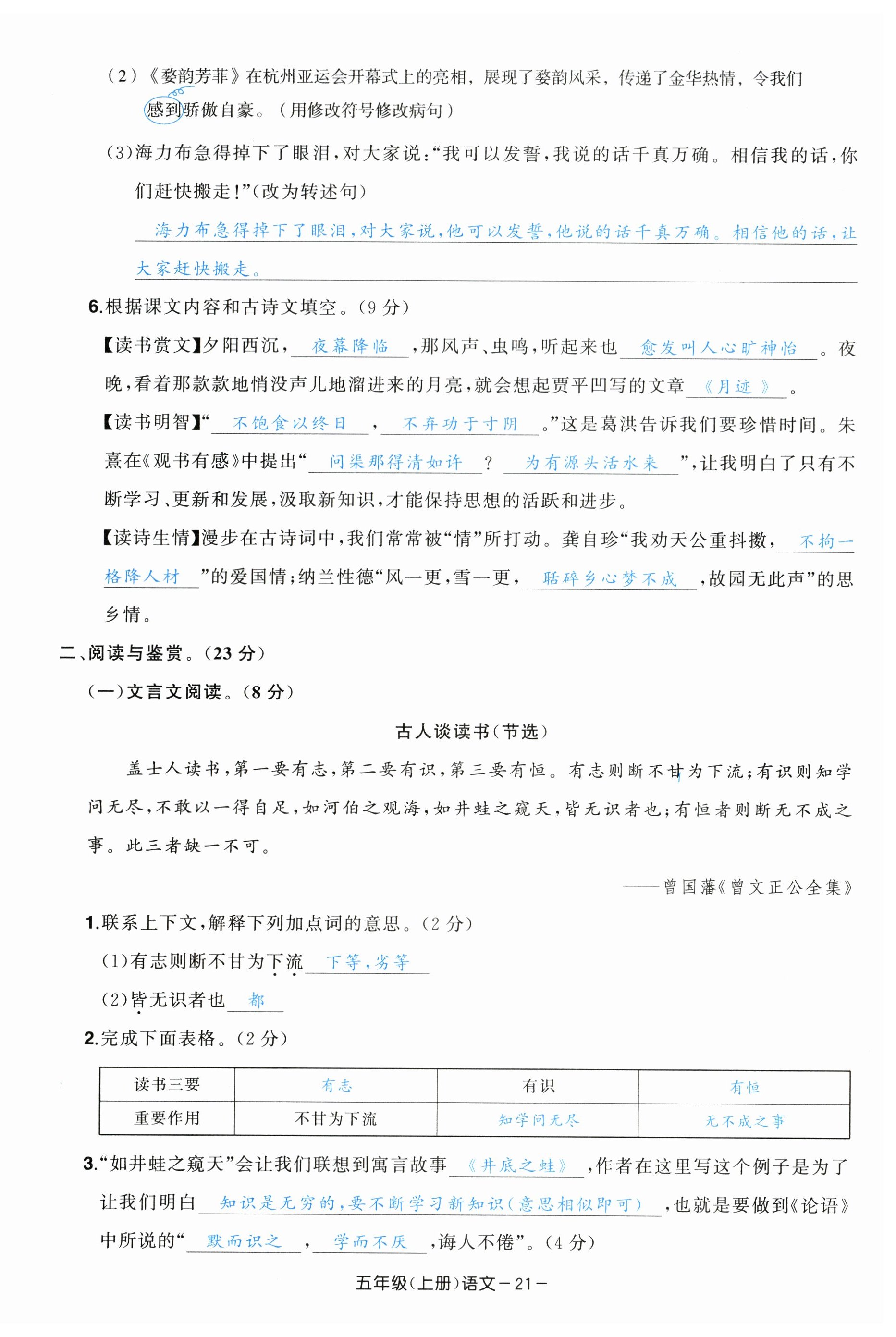 注:目前有些书本章节名称可能整理的还不是很完善,但都是按照顺序排列的,请同学们按照顺序仔细查找。练习册 2023年小学期末加油站五年级语文上册人教版 答案主要是用来给同学们做完题方便对答案用的,请勿直接抄袭。