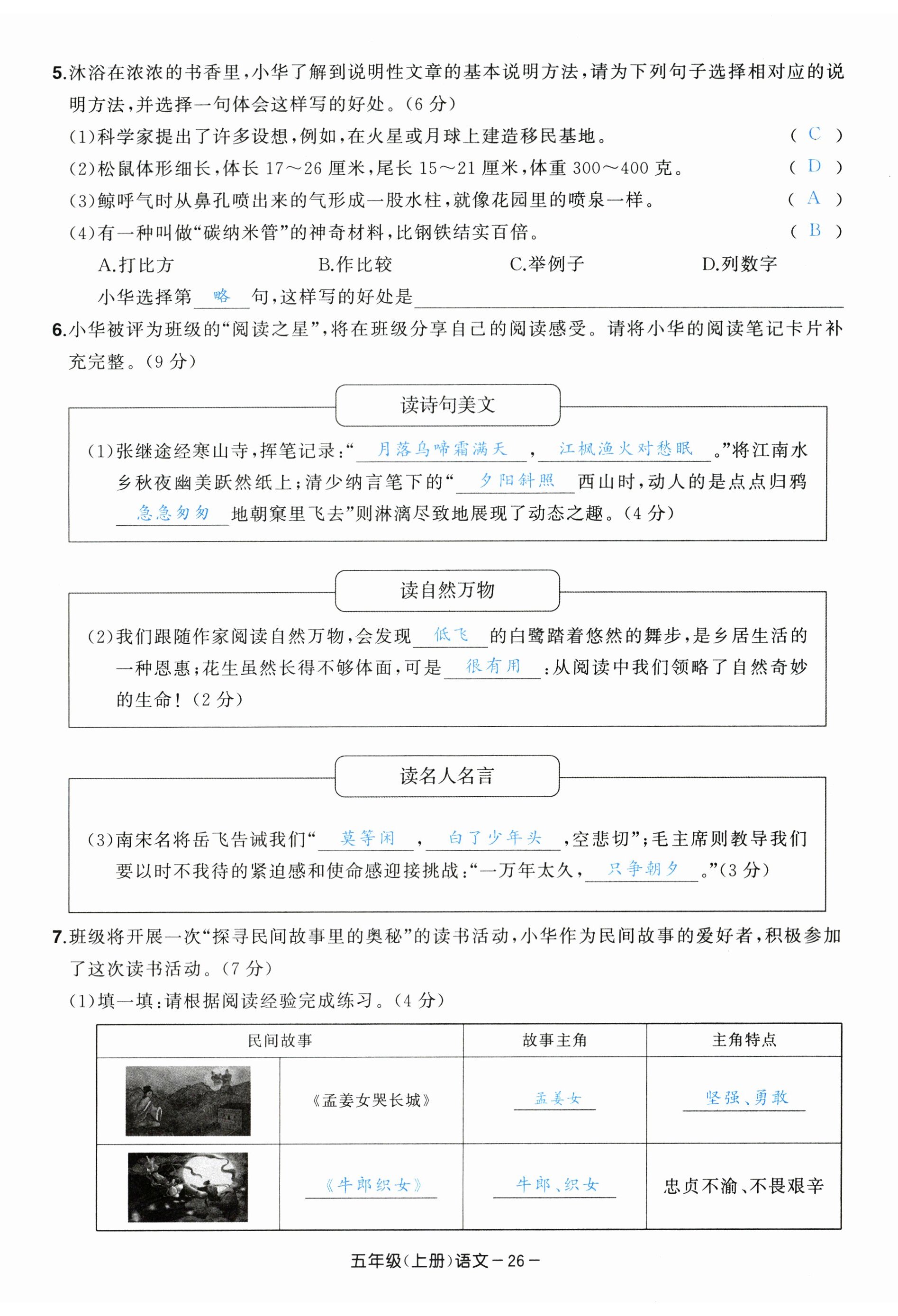 注:目前有些书本章节名称可能整理的还不是很完善,但都是按照顺序排列的,请同学们按照顺序仔细查找。练习册 2023年小学期末加油站五年级语文上册人教版 答案主要是用来给同学们做完题方便对答案用的,请勿直接抄袭。