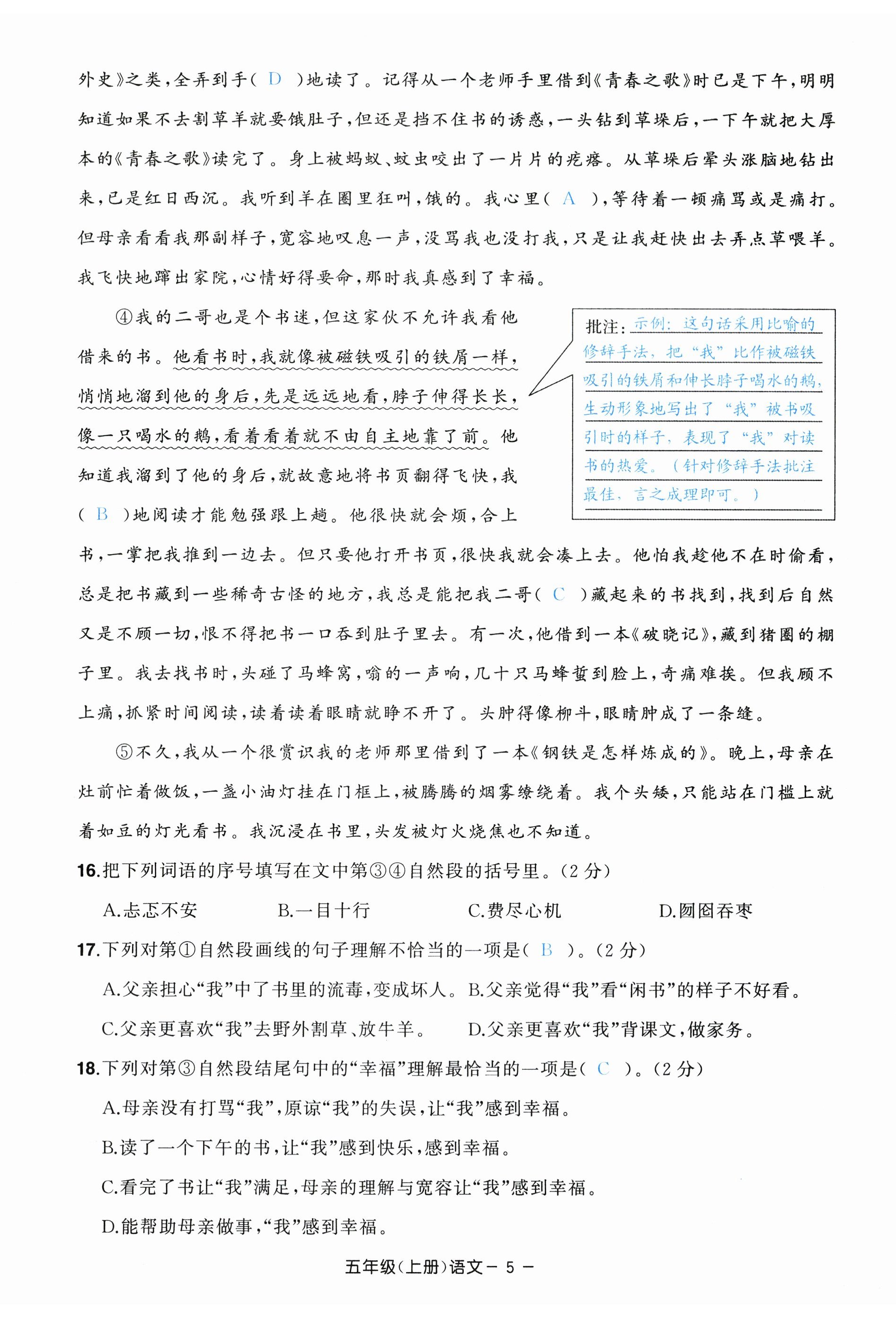 注:目前有些书本章节名称可能整理的还不是很完善,但都是按照顺序排列的,请同学们按照顺序仔细查找。练习册 2023年小学期末加油站五年级语文上册人教版 答案主要是用来给同学们做完题方便对答案用的,请勿直接抄袭。