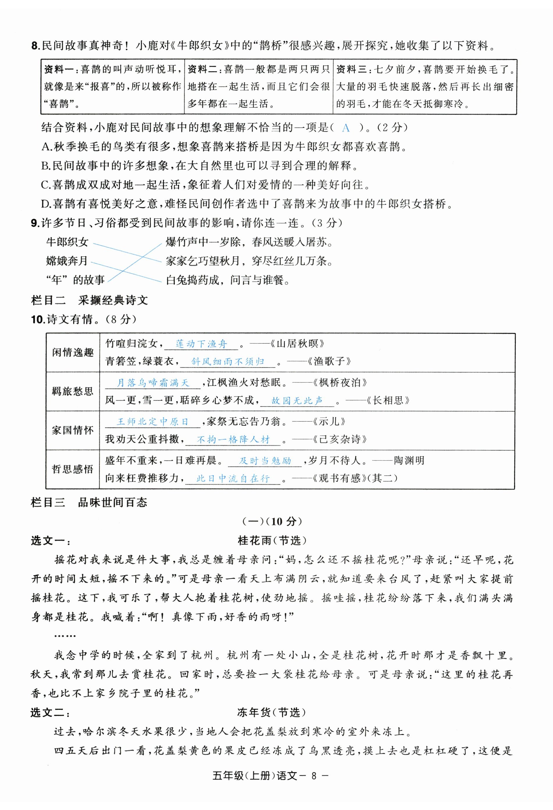 注:目前有些书本章节名称可能整理的还不是很完善,但都是按照顺序排列的,请同学们按照顺序仔细查找。练习册 2023年小学期末加油站五年级语文上册人教版 答案主要是用来给同学们做完题方便对答案用的,请勿直接抄袭。