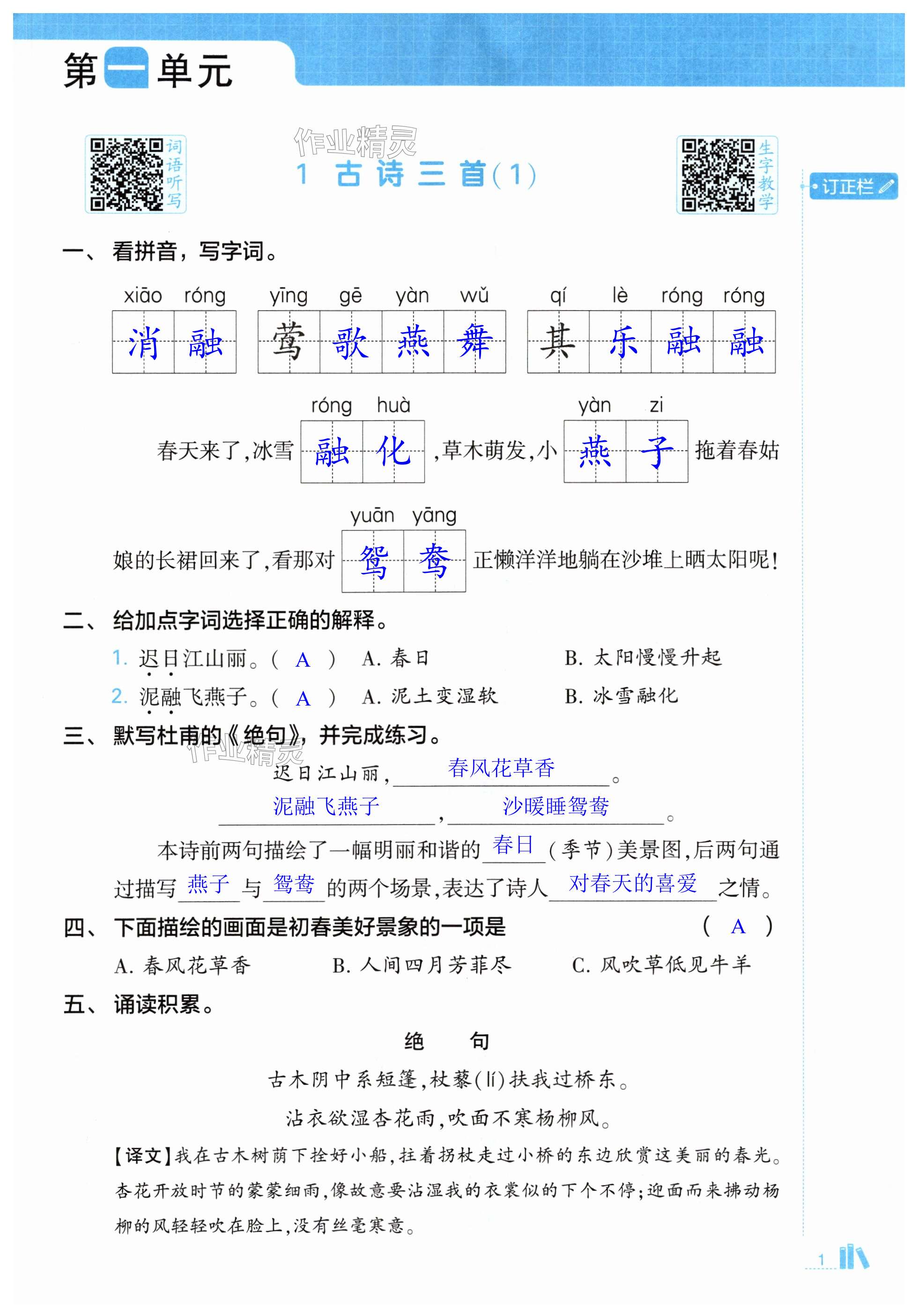 注:目前有些书本章节名称可能整理的还不是很完善,但都是按照顺序排列的,请同学们按照顺序仔细查找。练习册 2024年经纶学典默写达人三年级语文下册人教版 答案主要是用来给同学们做完题方便对答案用的,请勿直接抄袭。