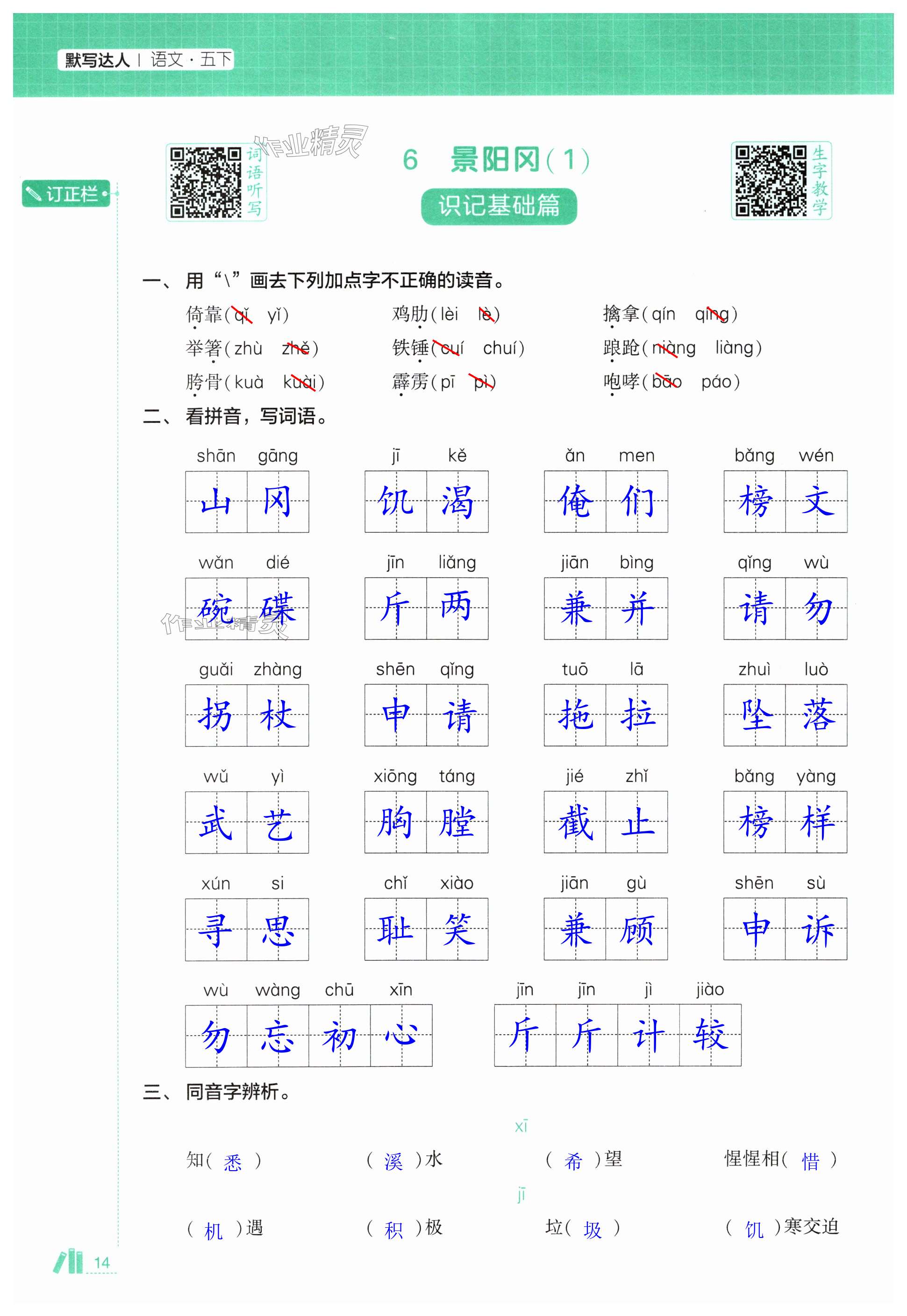 注:目前有些书本章节名称可能整理的还不是很完善,但都是按照顺序排列的,请同学们按照顺序仔细查找。练习册 2024年经纶学典默写达人五年级语文下册人教版 答案主要是用来给同学们做完题方便对答案用的,请勿直接抄袭。