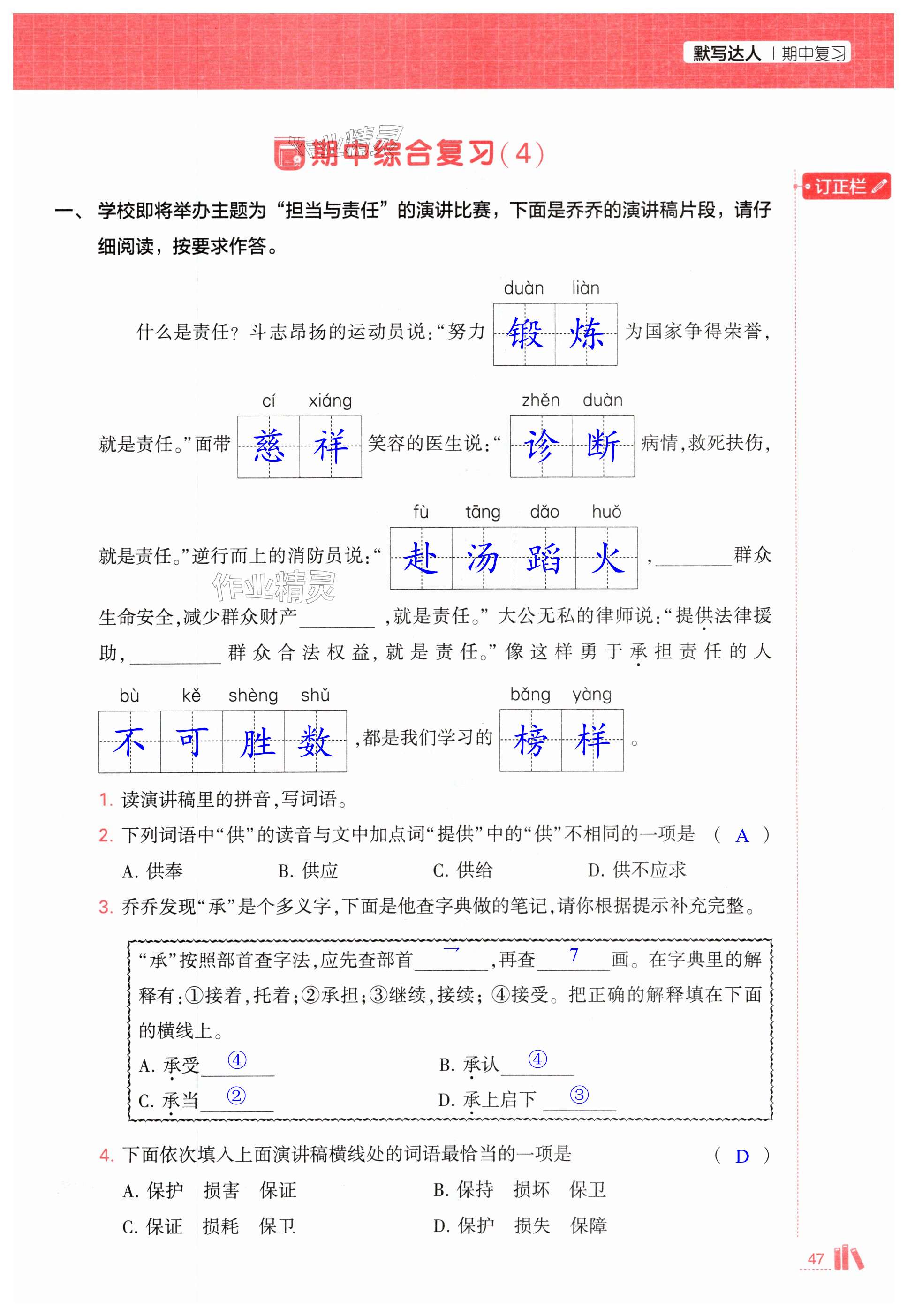 注:目前有些书本章节名称可能整理的还不是很完善,但都是按照顺序排列的,请同学们按照顺序仔细查找。练习册 2024年经纶学典默写达人五年级语文下册人教版 答案主要是用来给同学们做完题方便对答案用的,请勿直接抄袭。