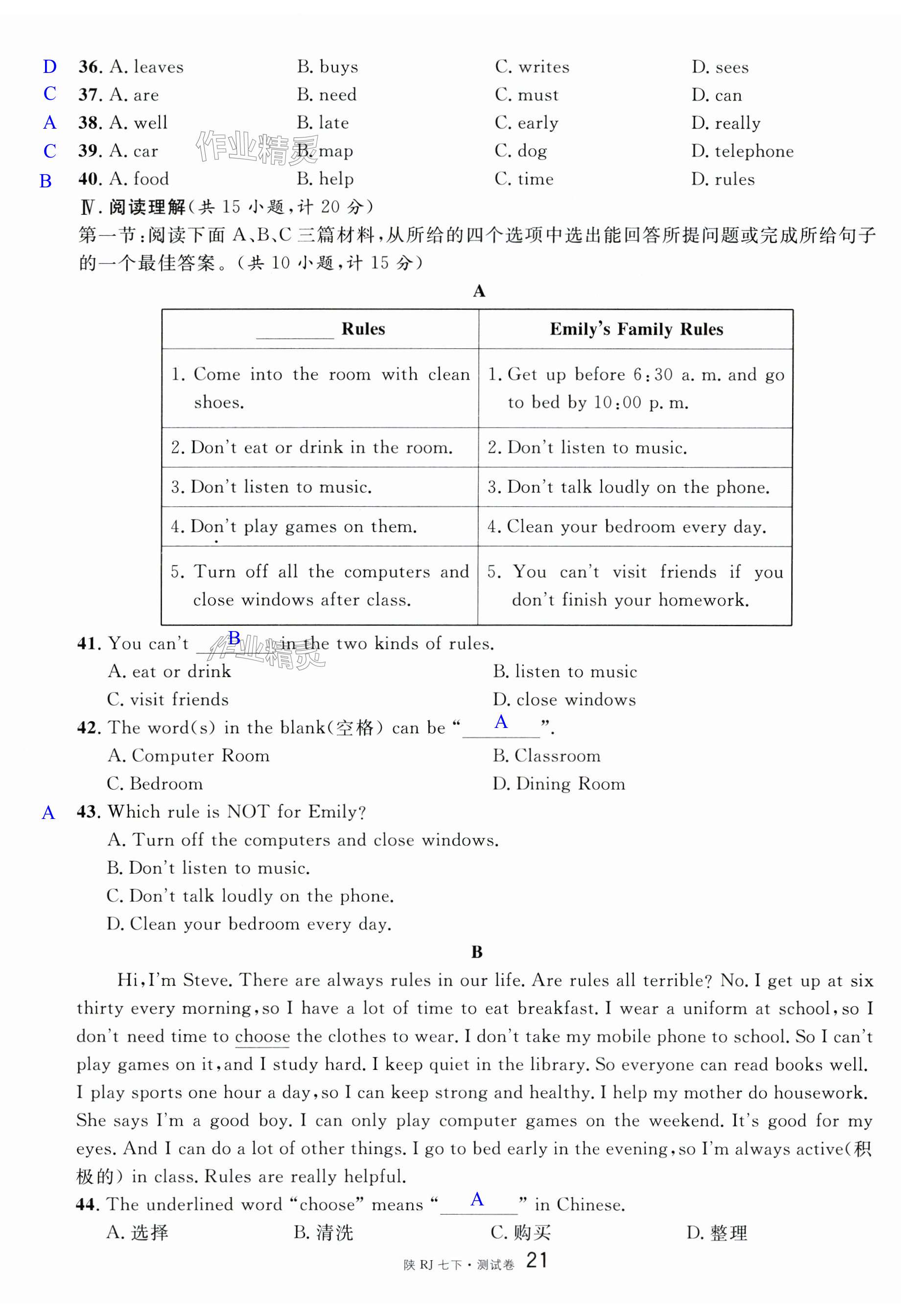 注:目前有些书本章节名称可能整理的还不是很完善,但都是按照顺序排列的,请同学们按照顺序仔细查找。练习册 2024年名校课堂七年级英语下册人教版陕西专版 答案主要是用来给同学们做完题方便对答案用的,请勿直接抄袭。