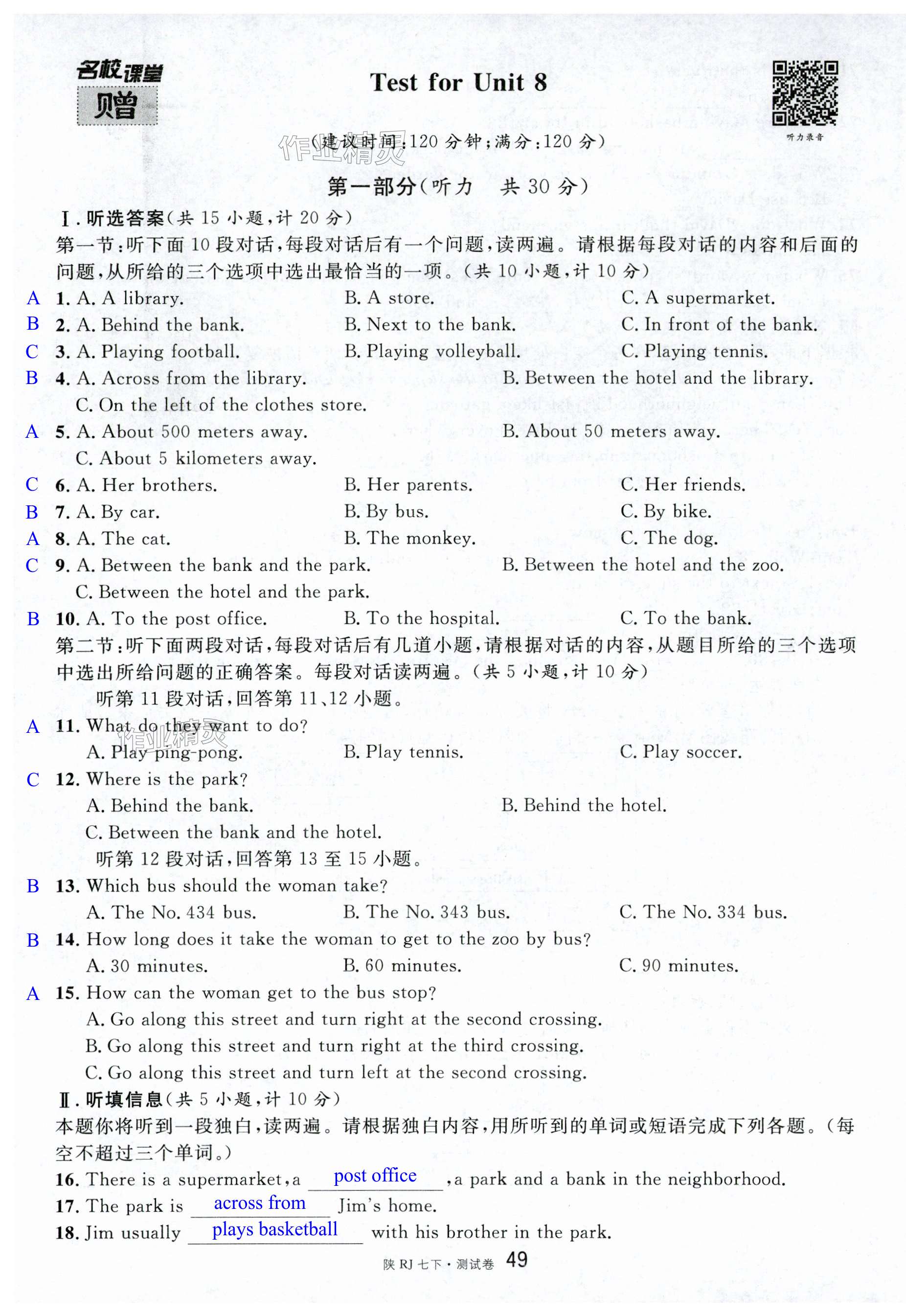 注:目前有些书本章节名称可能整理的还不是很完善,但都是按照顺序排列的,请同学们按照顺序仔细查找。练习册 2024年名校课堂七年级英语下册人教版陕西专版 答案主要是用来给同学们做完题方便对答案用的,请勿直接抄袭。